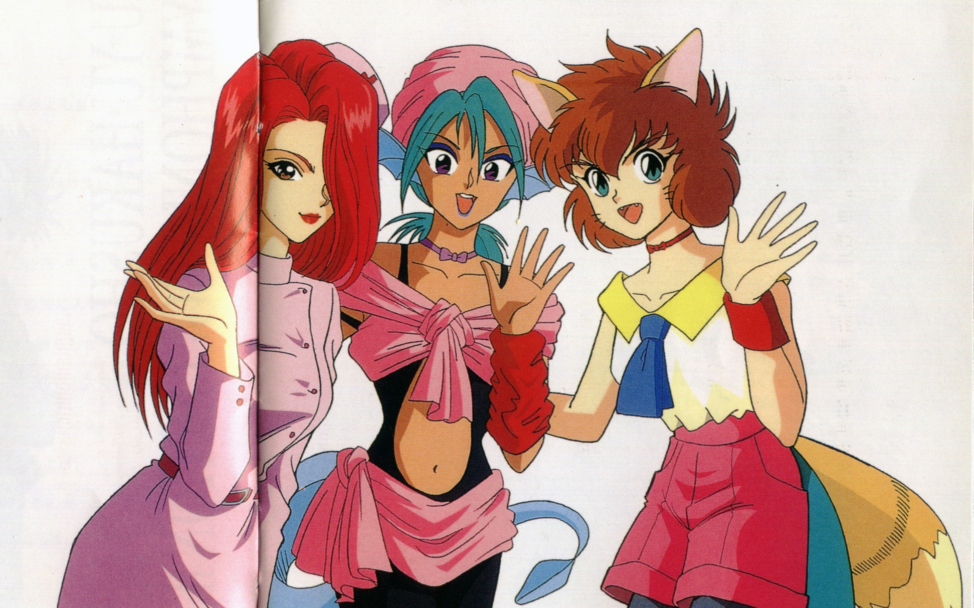 3girls 1990s_(style) highres juri_(yu_yu_hakusho) koto_(yu_yu_hakusho) looking_at_viewer multiple_girls official_art retro_artstyle ruka_(yu_yu_hakusho) scan yuu_yuu_hakusho