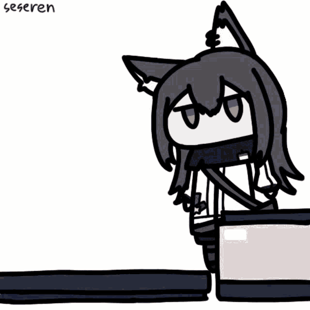 alternate_color animal_ears animated animated_gif arknights conveyor_belt lappland_(arknights) lip_biting multiple_girls seseren texas_(arknights)