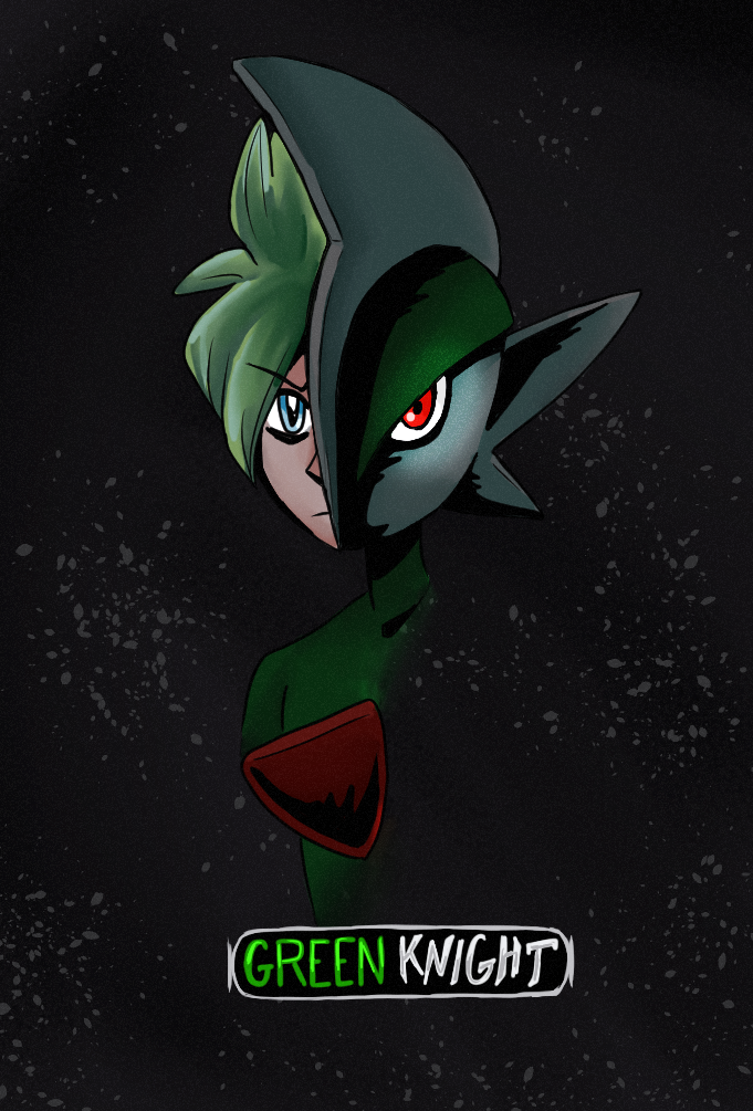 1boy blue_eyes drawfag frown gallade gen_4_pokemon green_hair looking_at_viewer marvel marvel moon_knight_(disney+) nintendo parody pokemon pokemon_(creature) pokemon_omega_ruby_and_alpha_sapphire red_eyes title_parody upper_body wally_(pokemon)