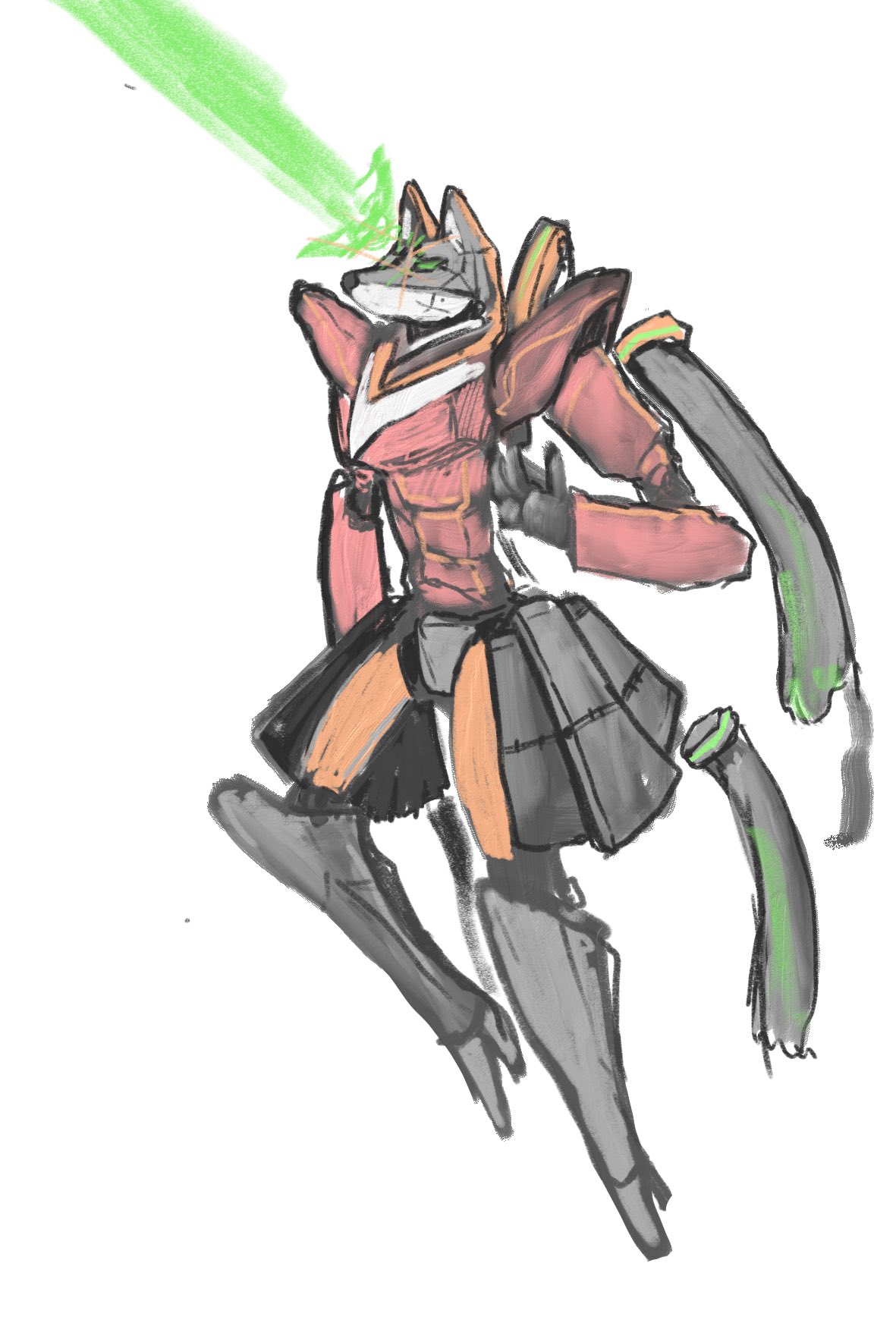 animal_ears gloves highres island_fox_(kemono_friends) kemono_friends kemono_friends_v_project mujinamori_tamakichi necktie robot shimahairobo shirt simple_background skirt tail virtual_youtuber white_background