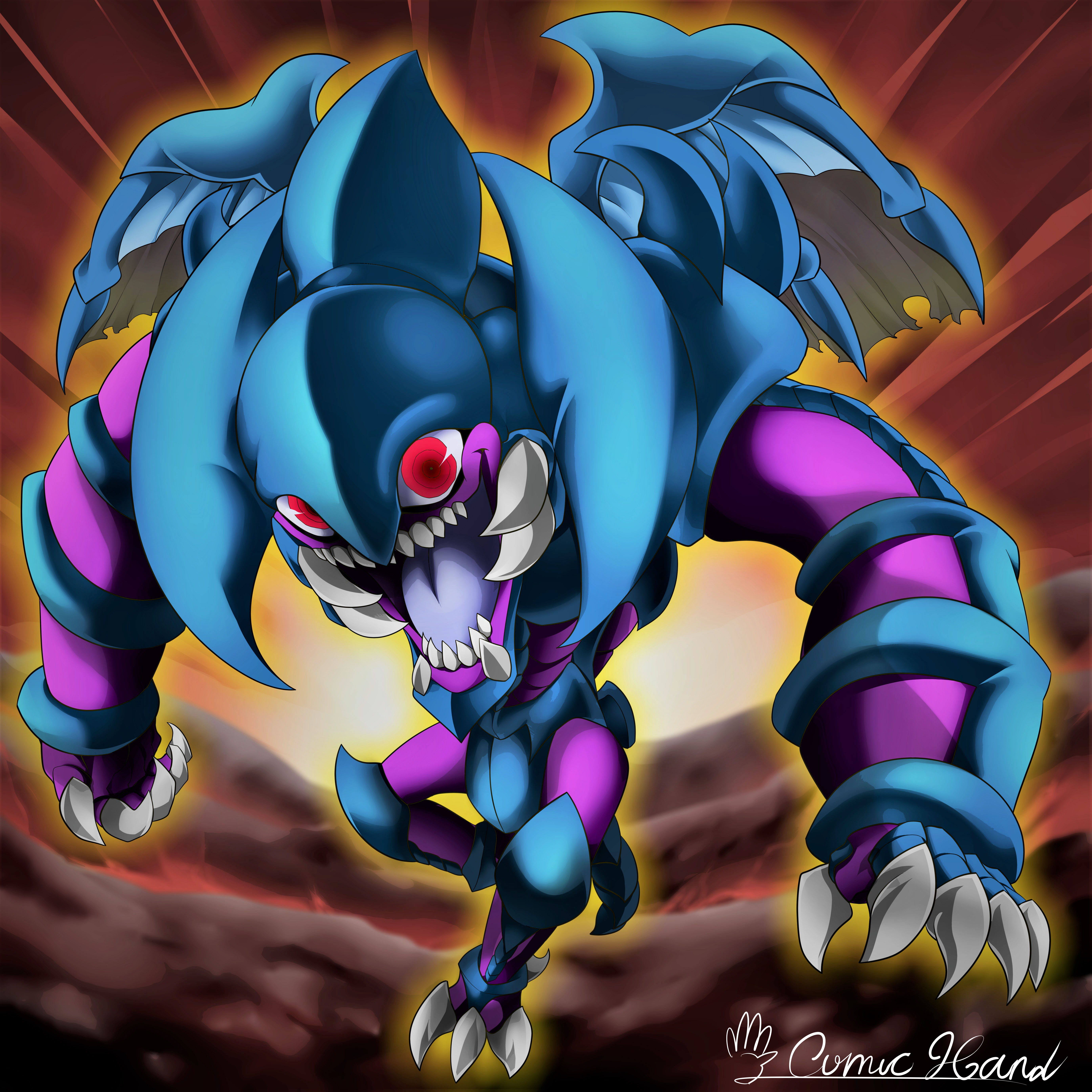 1boy abs absurdres alternate_form claws comic_hand demon demon_wings duel_monster flying highres horns jumping looking_at_viewer monster_boy muscular no_humans open_mouth pectorals raviel_lord_of_phantasms sharp_teeth solo tail teeth wings yu-gi-oh!