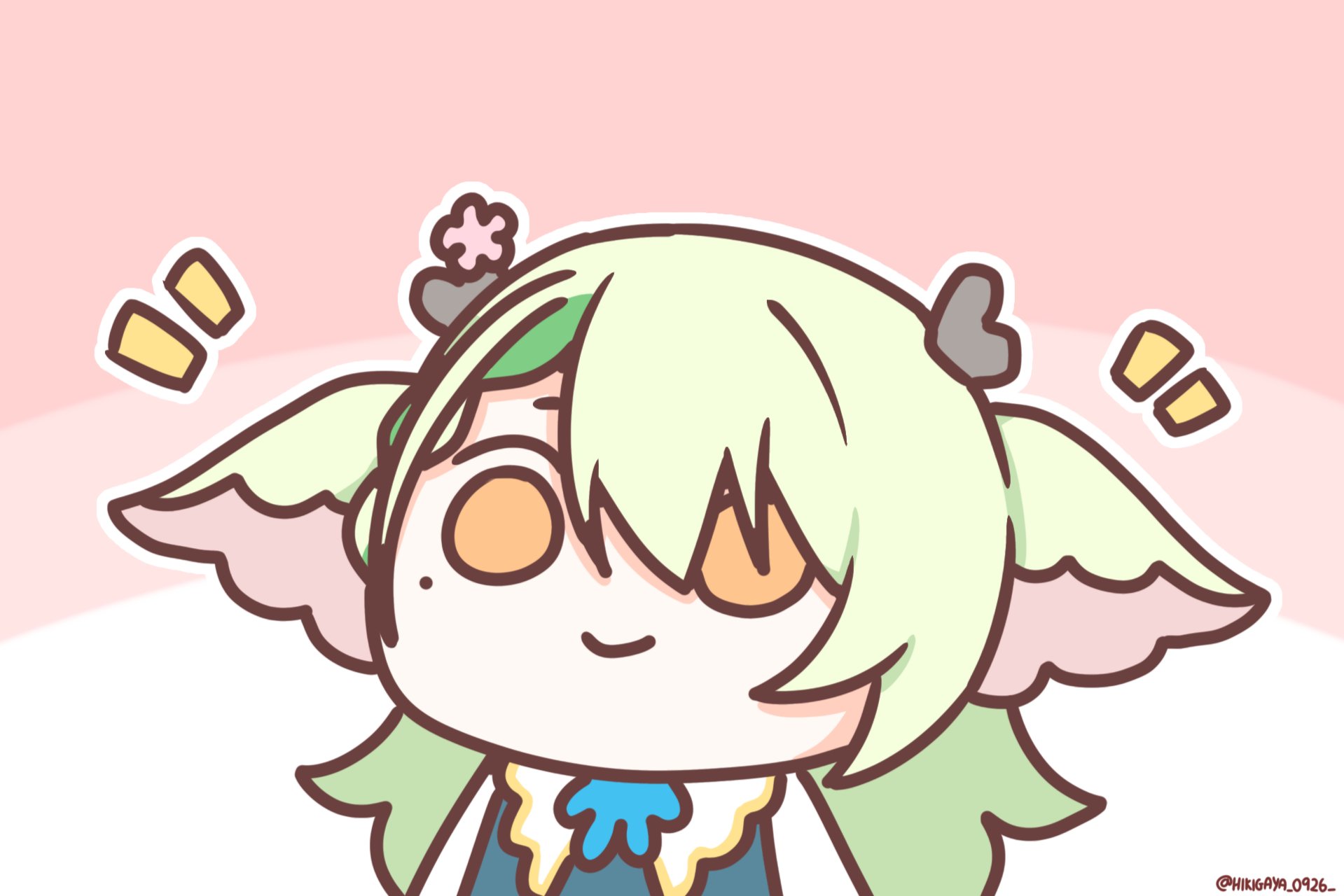 1girl animal_ears antlers ceres_fauna chibi closed_mouth green_hair hair_between_eyes highres hikigaya_0926 hololive hololive_english horns looking_at_viewer mole mole_under_eye orange_eyes short_hair solo twitter_username upper_body virtual_youtuber
