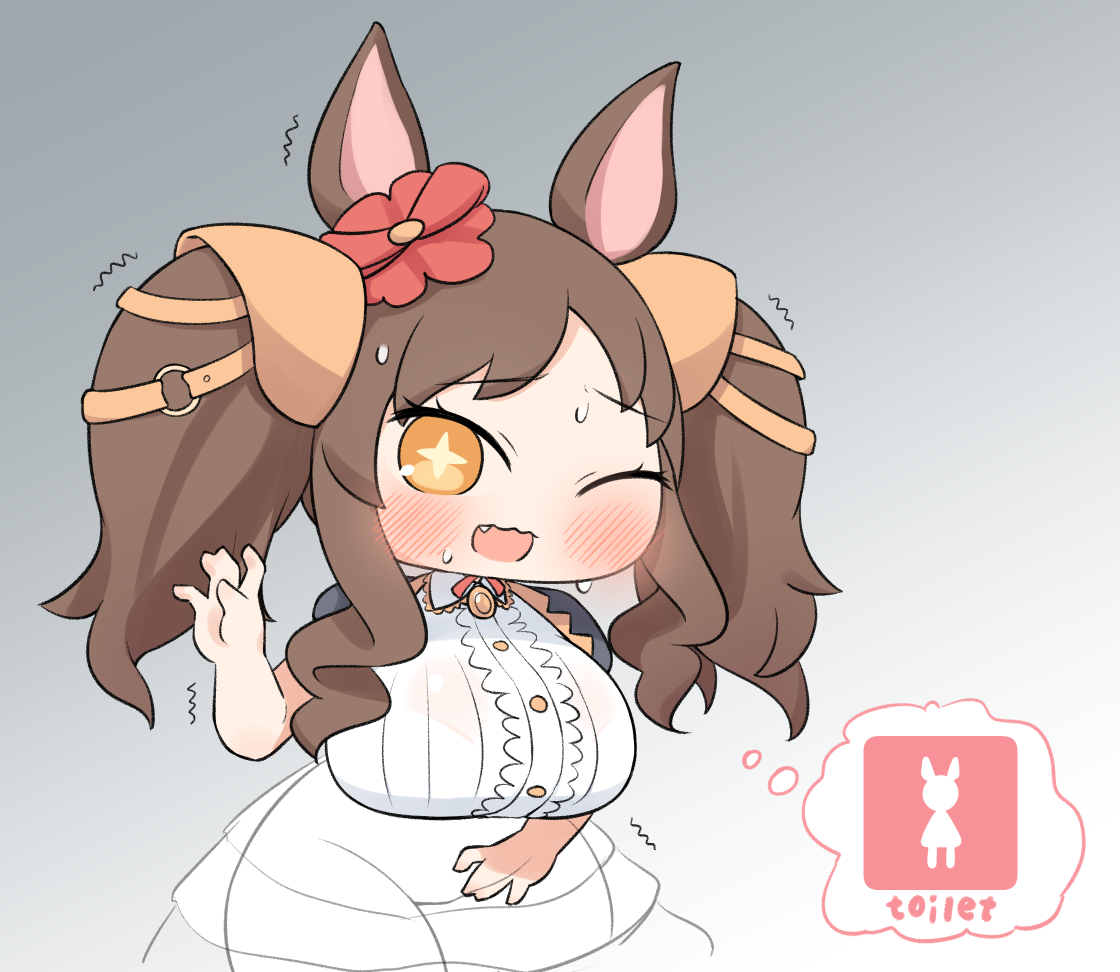 1girl breasts cheonsomhyang chibi horse_girl large_breasts marvelous_sunday_(umamusume) oppai_loli shortstack solo umamusume