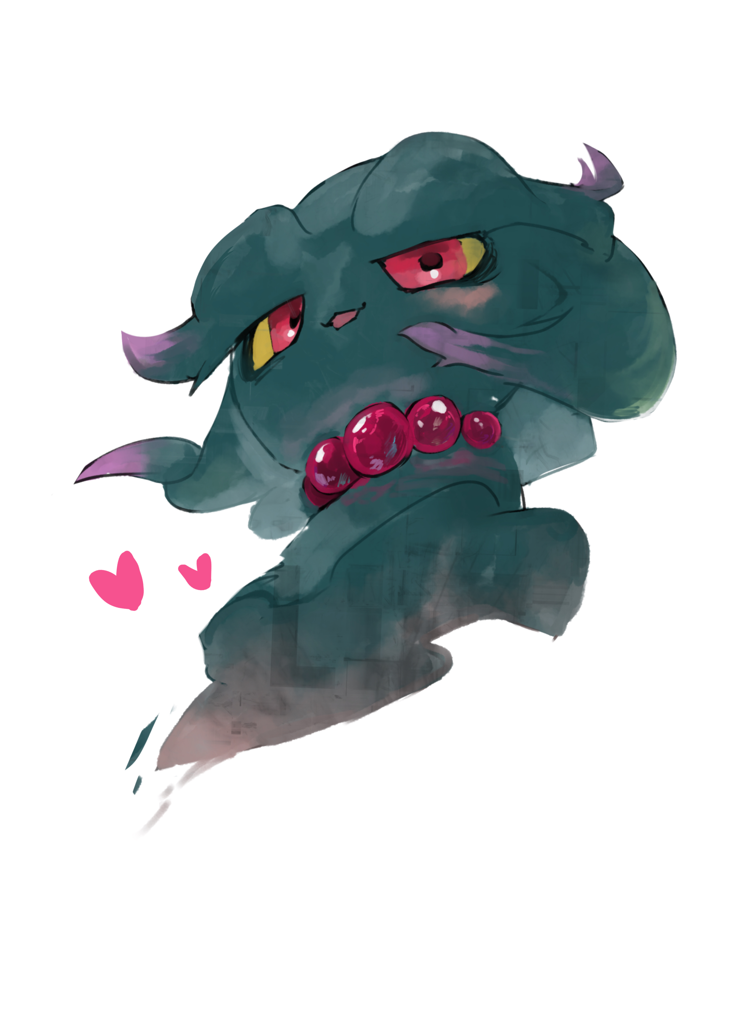 :3 absurdres colored_sclera from_below gen_2_pokemon ghost half-closed_eyes happy heart highres horezai looking_at_viewer looking_down misdreavus nintendo no_humans open_mouth pokemon pokemon_(creature) red_eyes simple_background smile solo white_background yellow_sclera