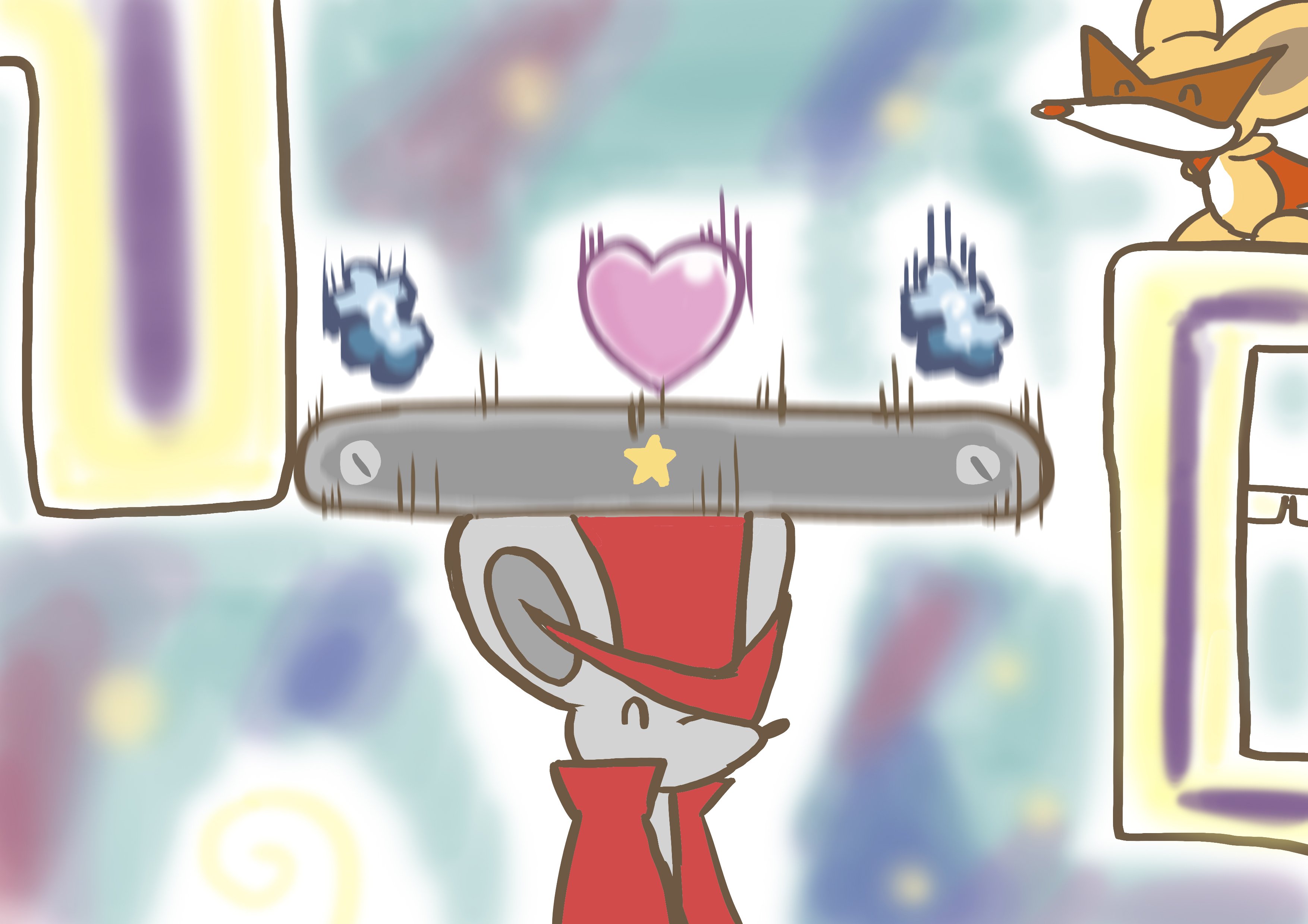 2boys absurdres bokunanashi0101 cape daroach closed_eyes falling hat heart highres kamina_shades kirby_star_allies kirby_(series) kirby:_squeak_squad male_focus multiple_boys nintendo no_humans puzzle_piece spinni star_(symbol) sunglasses top_hat