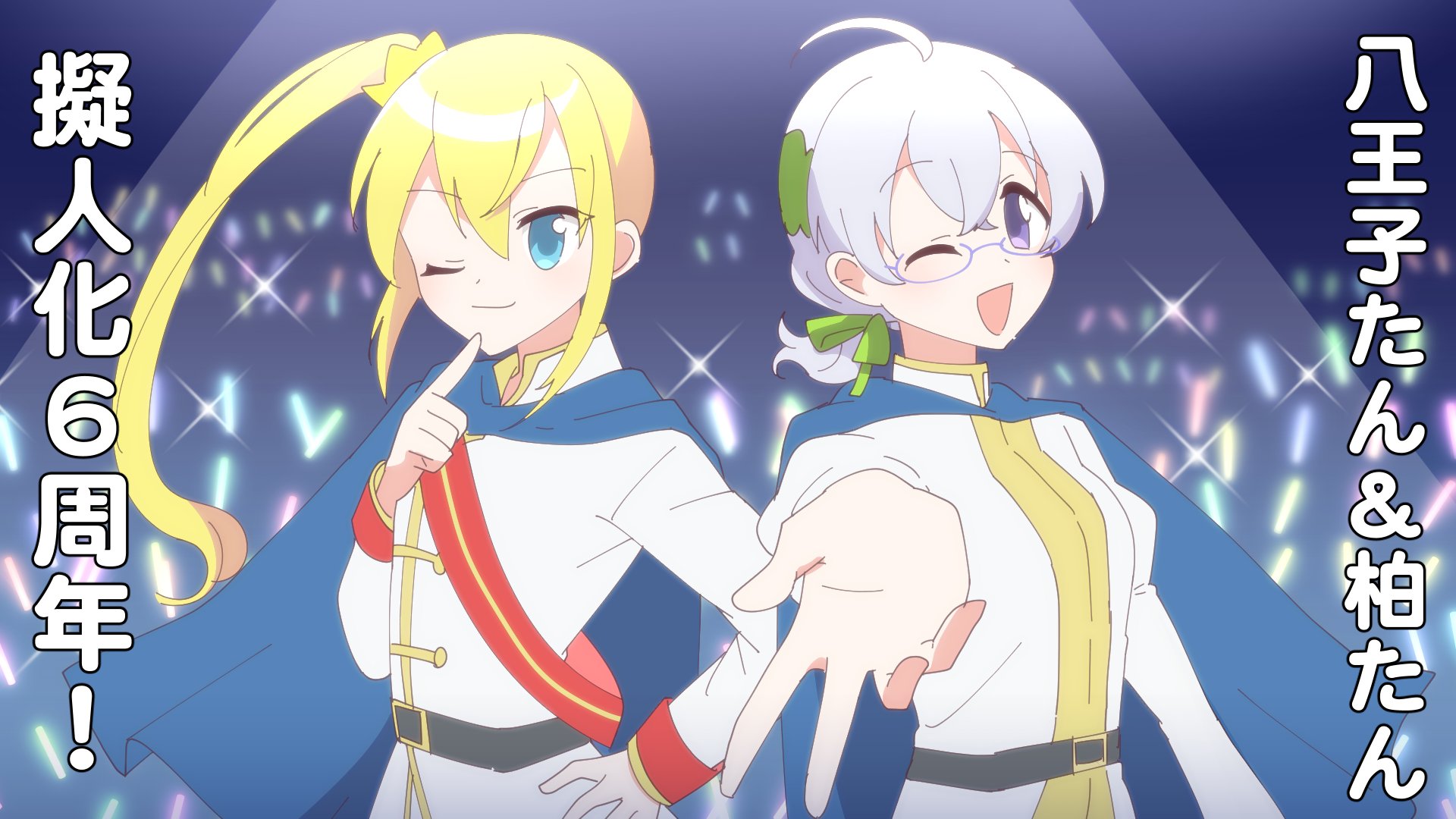 2girls blonde_hair hachiouji-tan highres jacket kashiwa-tan lapis_re:lights multiple_girls naisen one_eye_closed pen_light white_hair white_jacket wink