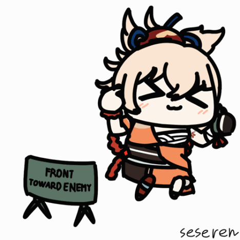 >_< 1girl animated animated_gif anti-personnel_mine anti-personnel_weapon claymore_(mine) covering_own_ears explosive genshin_impact lowres m18_claymore_mine mine_(weapon) seseren yoimiya_(genshin_impact)