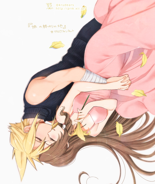 1boy 1girl 2020 aerith_gainsborough bad_id bad_pixiv_id bare_arms black_sweater blonde_hair breasts brown_hair closed_eyes cloud_strife couple dated dress final_fantasy final_fantasy_vii hand_on_hand hetero hug hug_from_behind kiss krudears long_dress long_hair medium_breasts petals pink_dress ribbed_sweater signature sleeveless sleeveless_dress sleeveless_sweater spiked_hair straight_hair sundress sweater turtleneck turtleneck_sweater twitter_username very_long_hair watermark web_address white_background