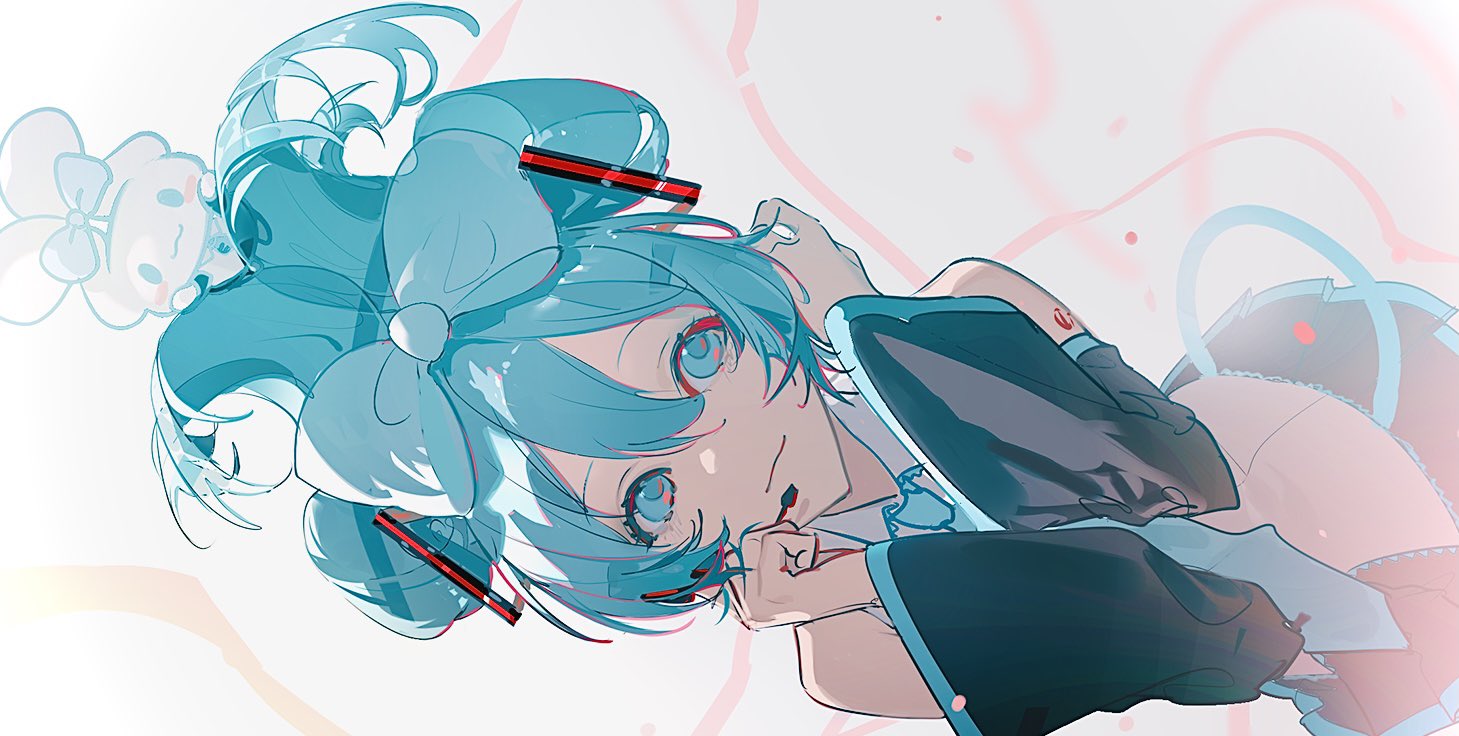 1girl animal bare_shoulders blue_eyes blue_hair closed_mouth hatsune_miku long_sleeves looking_to_the_side matching_hair/eyes microphone tansiki vocaloid