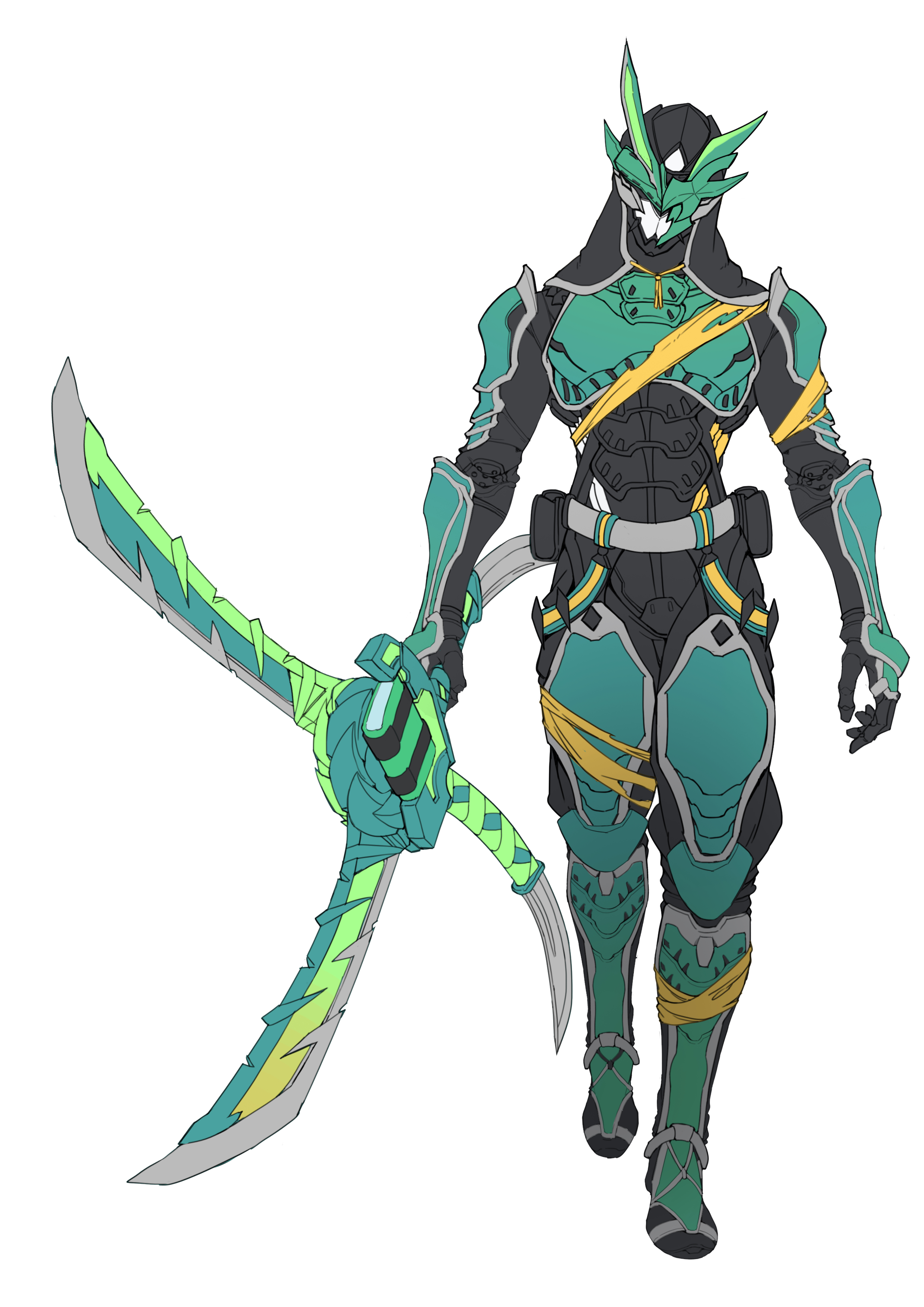 1boy absurdres armor asymmetrical_armor asymmetrical_footwear black_armor black_gloves catball1994 fuuma_shuriken gloves green_armor highres holding holding_weapon kamen_rider kamen_rider_kenzan kamen_rider_saber_(series) male_focus mismatched_footwear ninja possessed scarf sharp_teeth shuriken teeth weapon