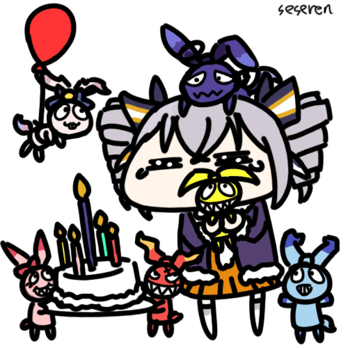 1girl animated animated_gif balloon birthday birthday_cake bronya_zaychik bronya_zaychik_(snowy_sniper) cake clapping doll food hola_(honkai_impact) holi_(honkai_impact) homei_(honkai_impact) homi_(honkai_impact) homu_(honkai_impact) honkai_(series) honkai_impact_3rd howo_(honkai_impact) lowres seseren tears