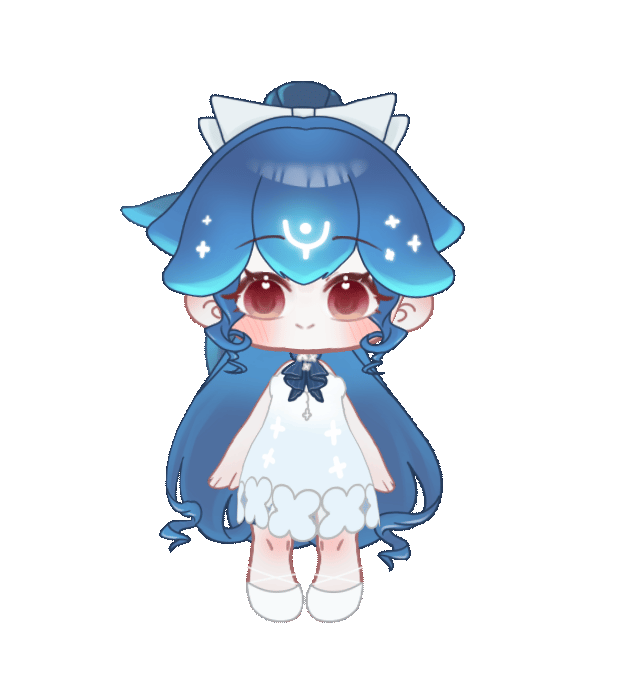 1girl animated animated_gif bao_the_whale bao_the_whale_(winter) bare_shoulders blue_hair brown_eyes cetacean_tail chibi dress fins fish_tail indie_virtual_youtuber liquid_hair long_hair looking_at_viewer red_eyes smile solo tail very_long_hair virtual_youtuber whale_girl yue_min