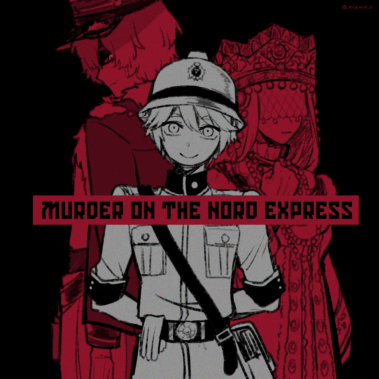 1girl 2boys andrew_kreiss andrew_kreiss_(train_conductor) arms_behind_back bags_under_eyes belt black_background coat coat_on_shoulders crown english_text expressionless film_grain gloves hand_on_own_chest highres identity_v jewelry looking_at_viewer melly_plinius melly_plinius_(sophia) melly_plinus_(sophia) monochrome multiple_boys murder_on_the_orient_express necklace shaded_face short_hair simple_background smile tendenbarabara veil veil_over_eyes victor_grantz victor_grantz_(sheriff)