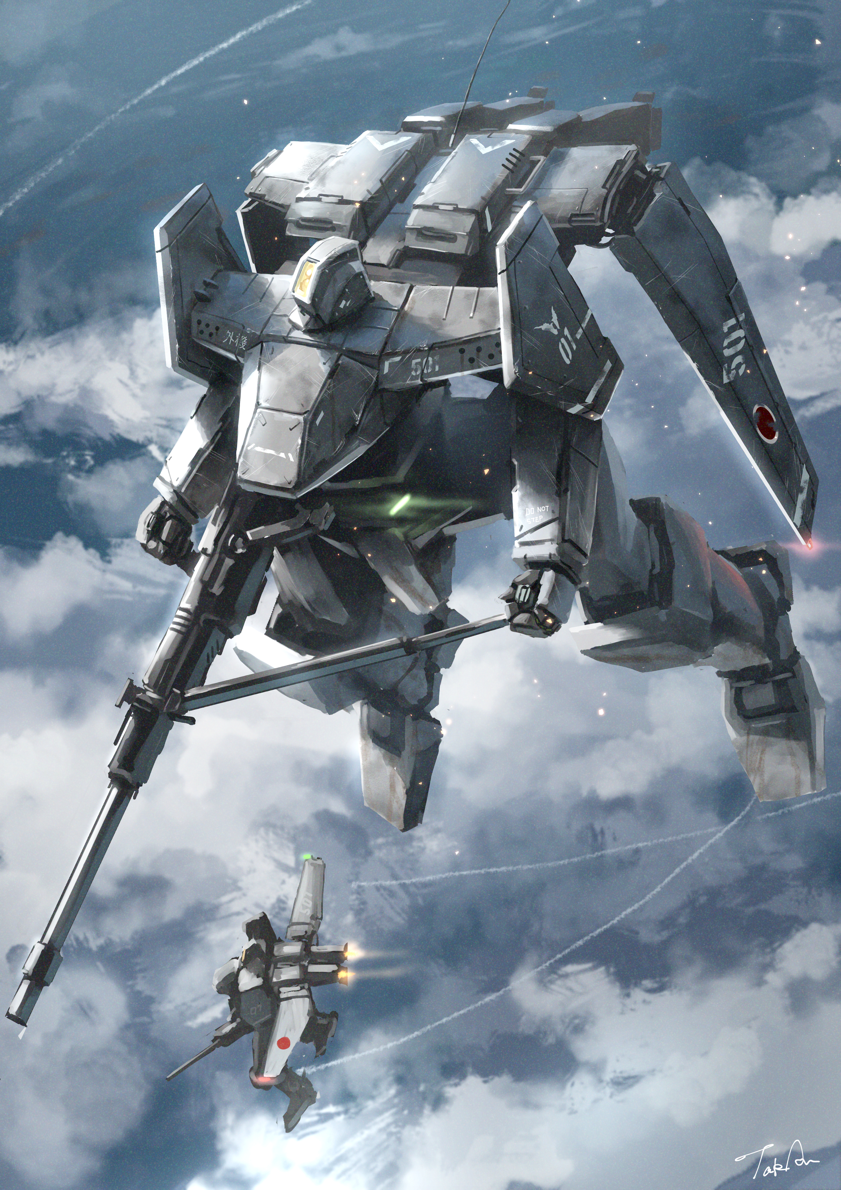 absurdres commission gungriffon highres mecha no_humans pixiv_commission robot sky tagme tank_gun type-12_high-macs