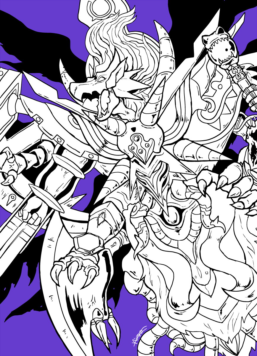 claws digimon dragon fusion highres spikes staff tentacles tera_devast wings