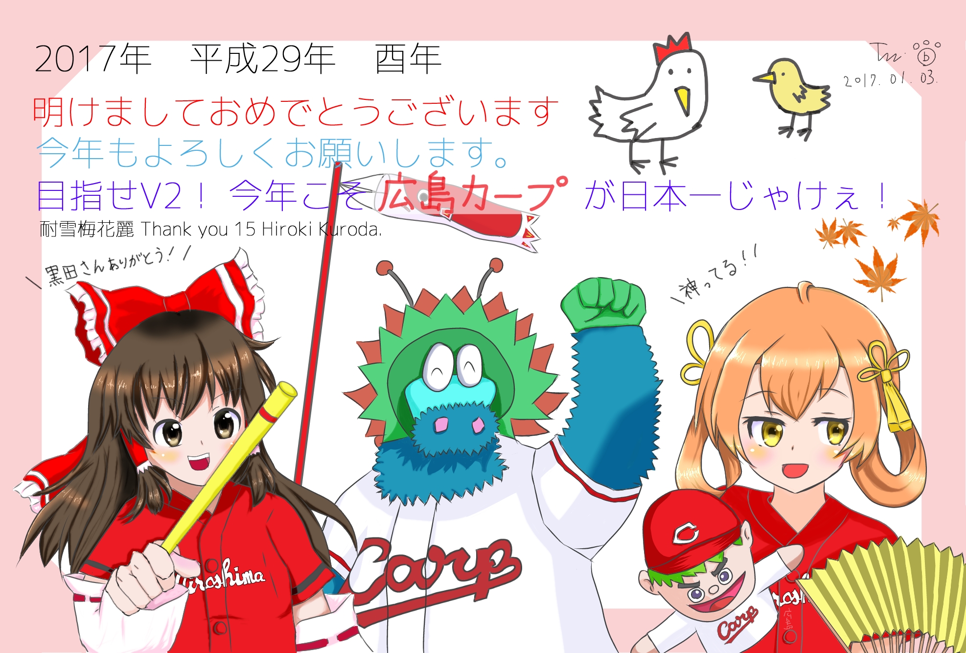 1other 2girls baseball_uniform brown_hair hakurei_reimu highres hiroshima-tan hiroshima_touyou_carp multiple_girls nippon_professional_baseball slily sportswear touhou