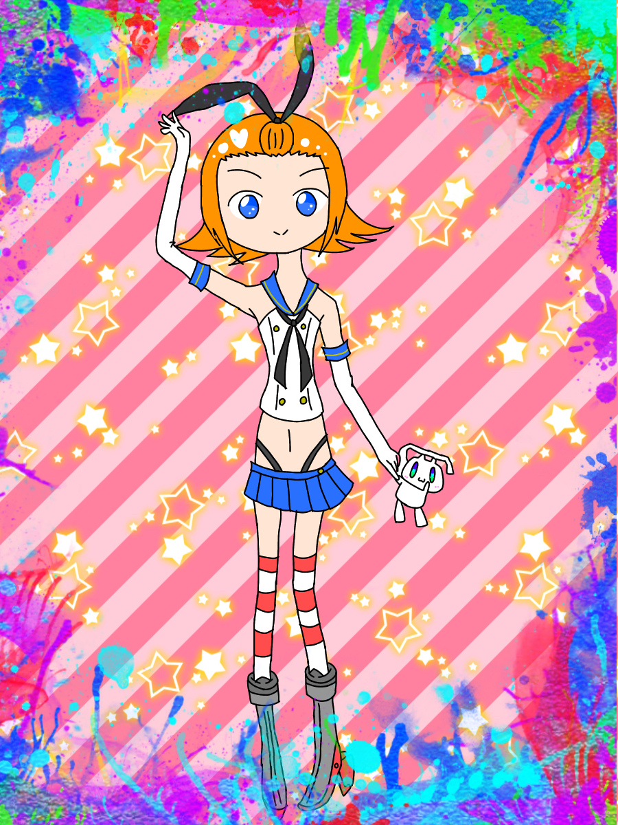 1girl blue_eyes blue_skirt cosplay highres kantai_collection oomiya-tan orange_hair shimakaze_(kancolle) shimakaze_(kancolle)_(cosplay) skirt
