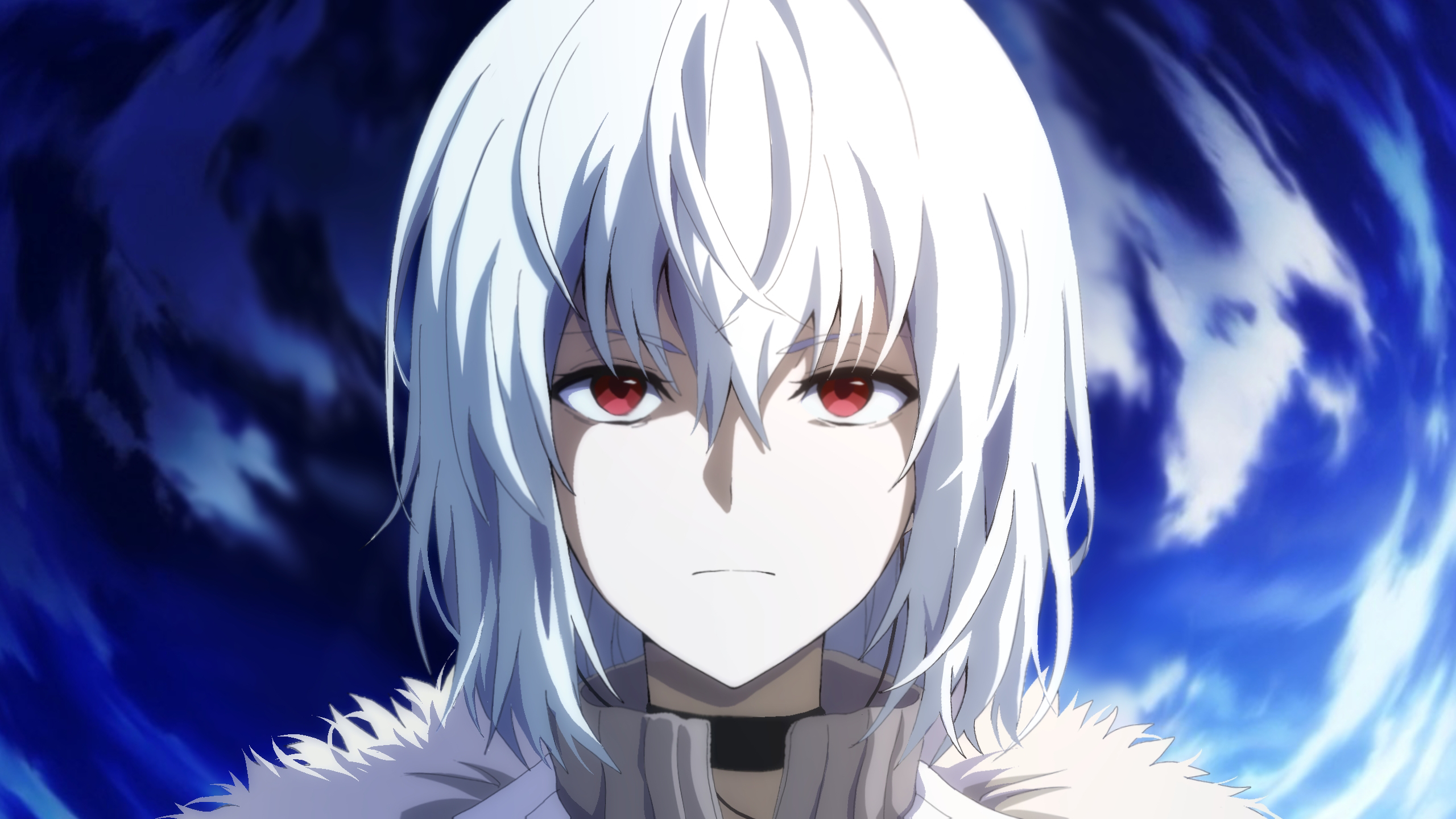 1boy accelerator_(toaru_majutsu_no_index) ahoge black_choker blue_background choker closed_mouth coat commentary english_commentary fog_(erpr3844) fur_coat hair_between_eyes highres looking_at_viewer male_focus red_eyes serious short_hair solo straight-on toaru_majutsu_no_index upper_body white_coat white_hair