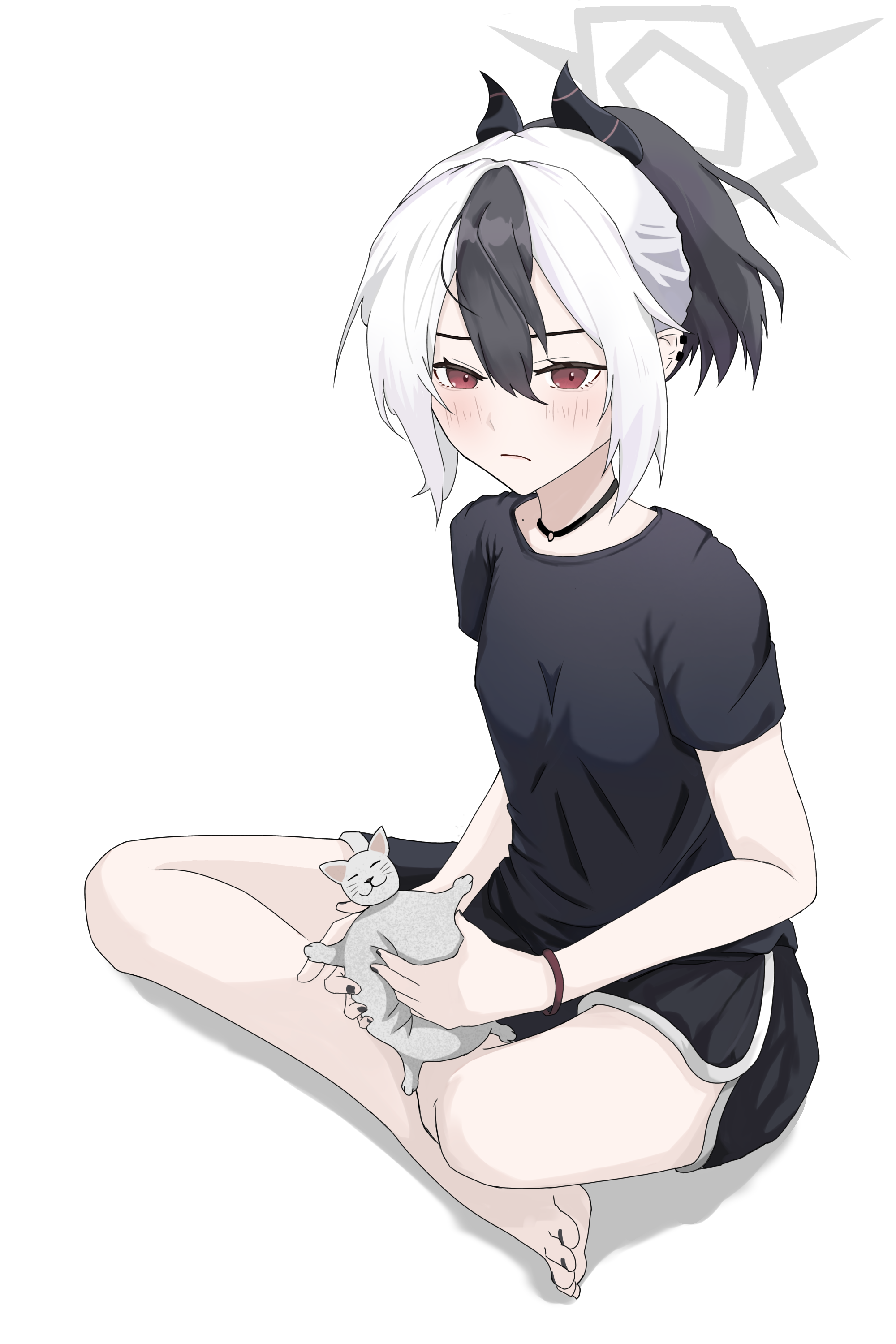 1girl absurdres blue_archive cat highres hikkio kayoko_(blue_archive) sitting solo white_background