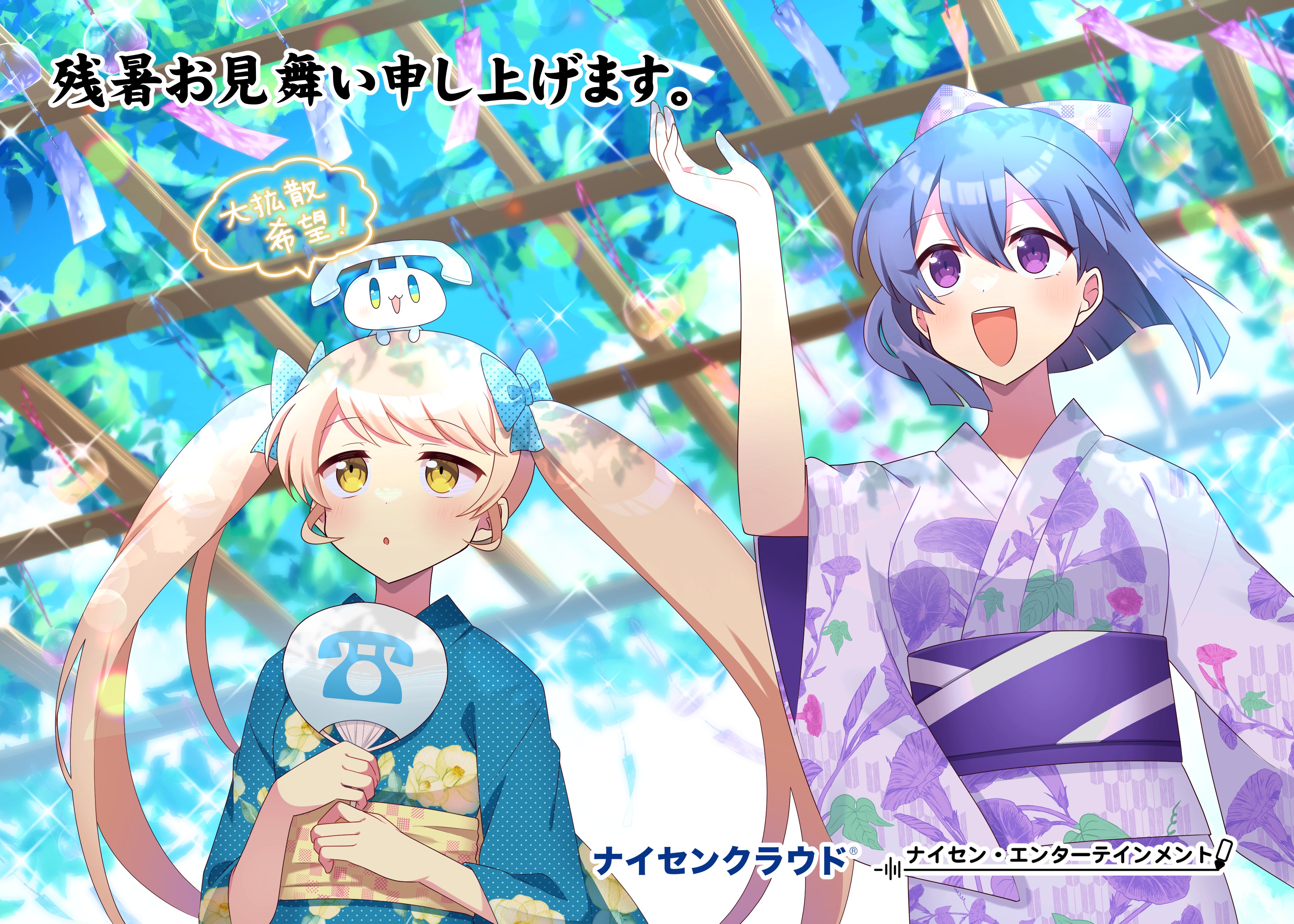 1other 2girls absurdres aite_iori blonde_hair highres japanese_clothes kimono multiple_girls naisen purple_hair telu-chan yukata