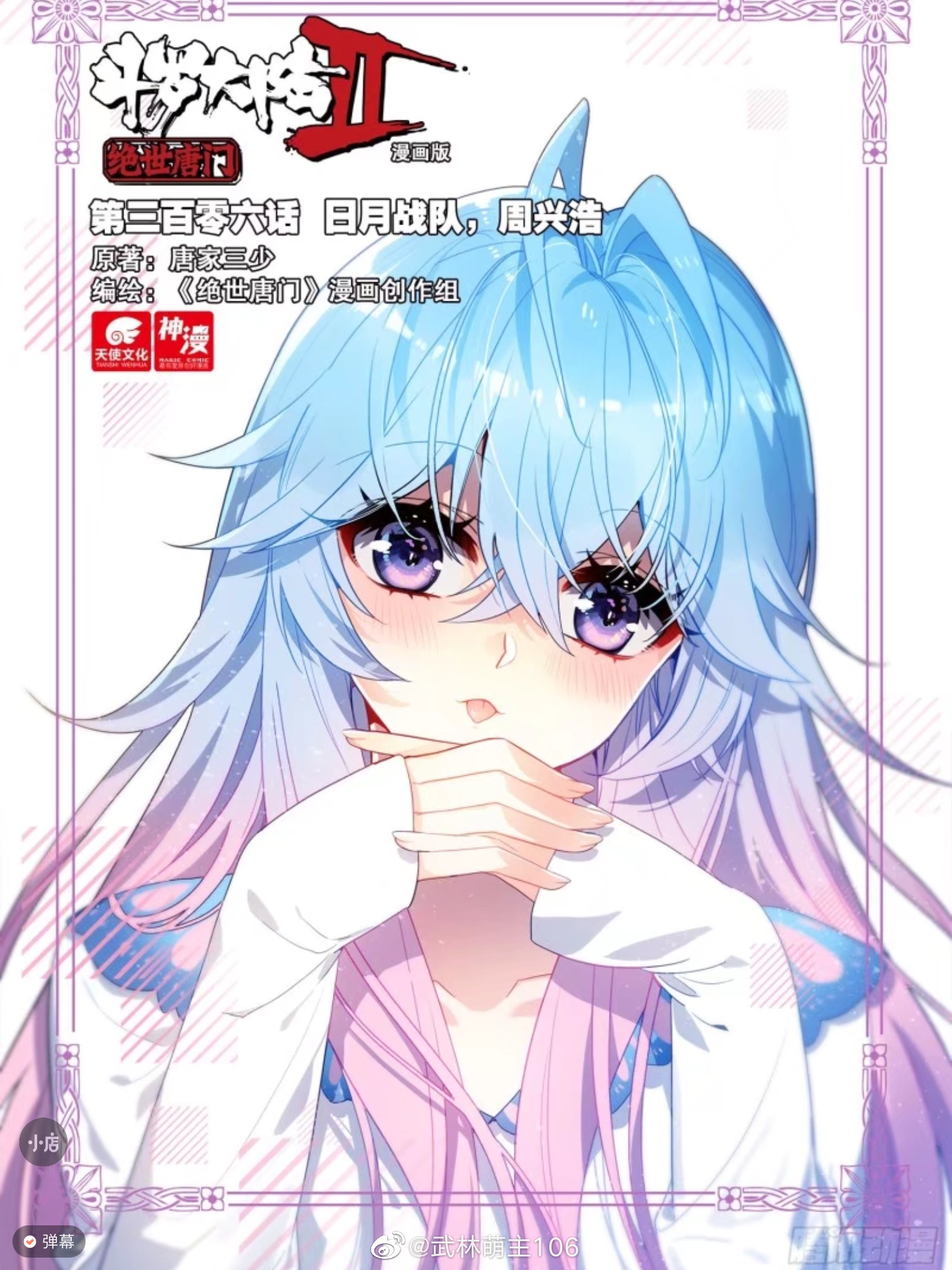 1girl ahoge blush border cover cover_page douluo_dalu gradient_hair head_tilt hei_zhi_shi highres long_hair long_sleeves looking_at_viewer multicolored_hair official_art own_hands_clasped own_hands_together shirt solo tang_wutong_(douluo_dalu) third-party_source tongue tongue_out upper_body white_background white_shirt