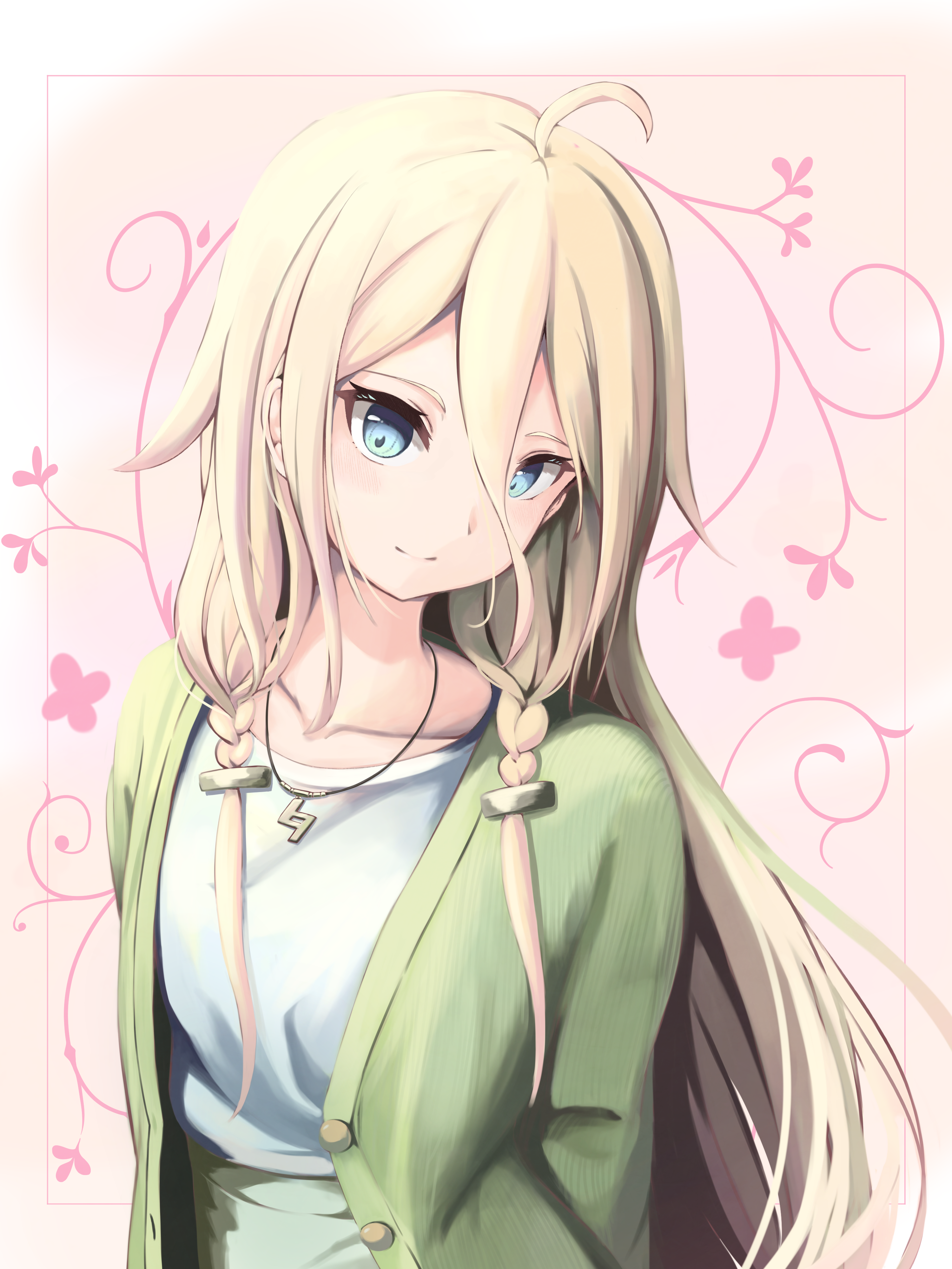 1girl absurdres blue_eyes dress green_dress haiyuki_yuki highres ia_(vocaloid) jewelry long_hair necklace pink_background vocaloid