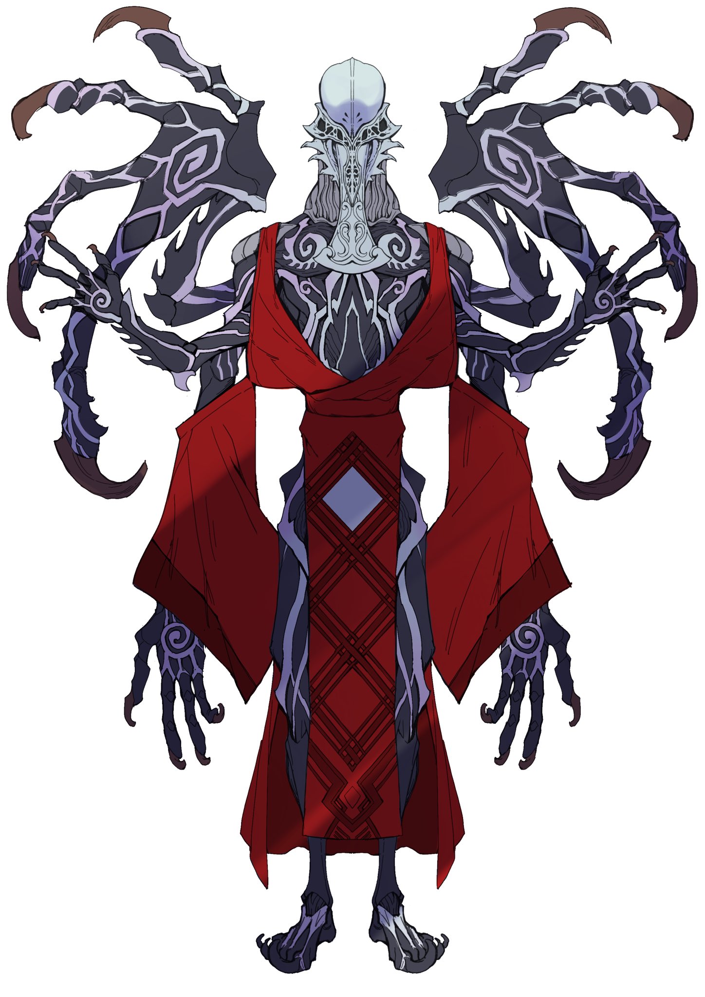 1boy bare_shoulders barefoot catball1994 demon detached_sleeves extra_arms highres jamato_(kamen_rider_geats) kamen_rider kamen_rider_geats_(series) markings monster red_robe robe simple_background standing stylistic white_background wings