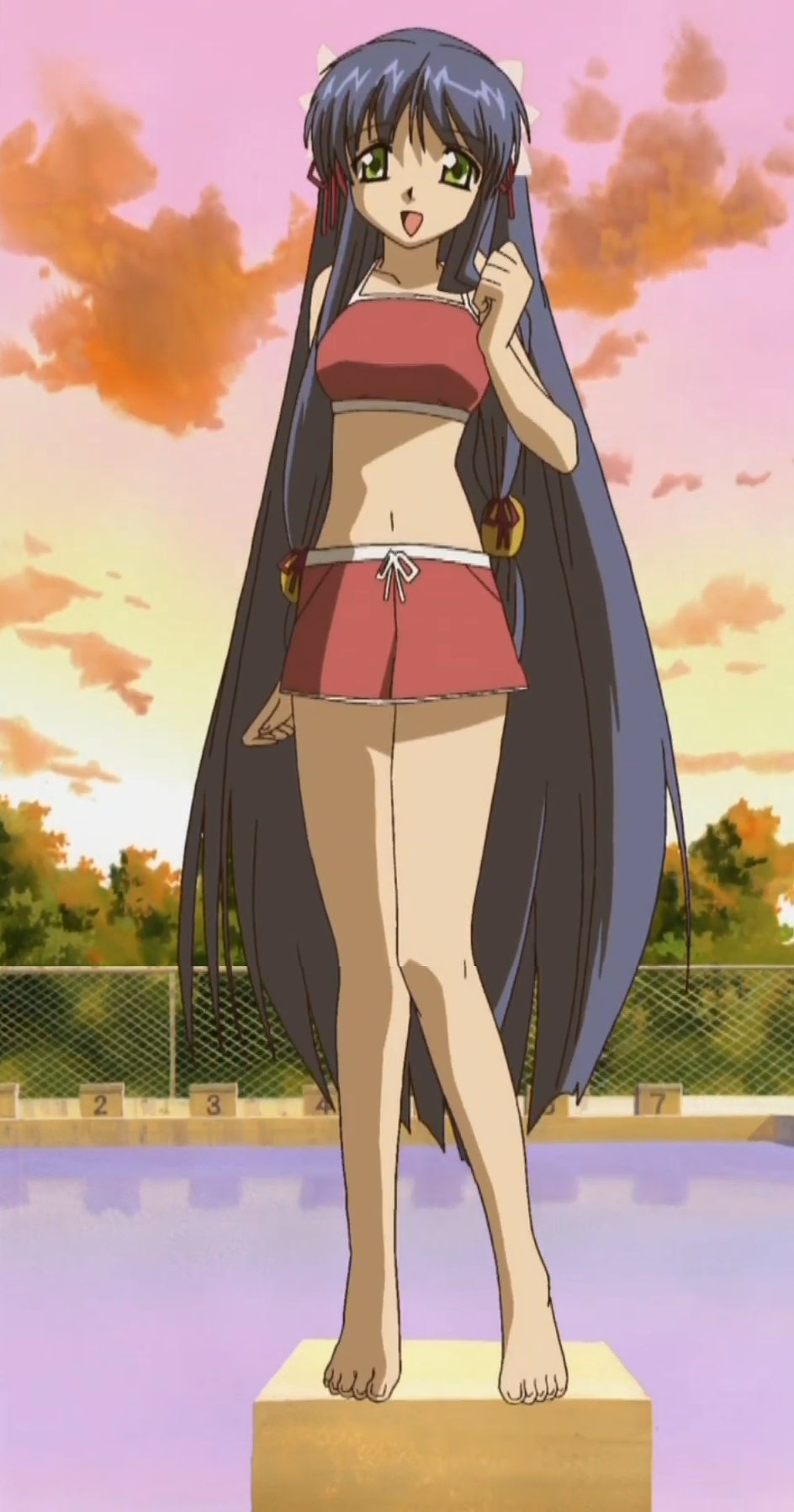 blue_hair green_eyes hair_ornament happy highres izumo izumo_2 long_hair pool sakuya_(izumo) screencap sky smile swimsuit very_long_hair water