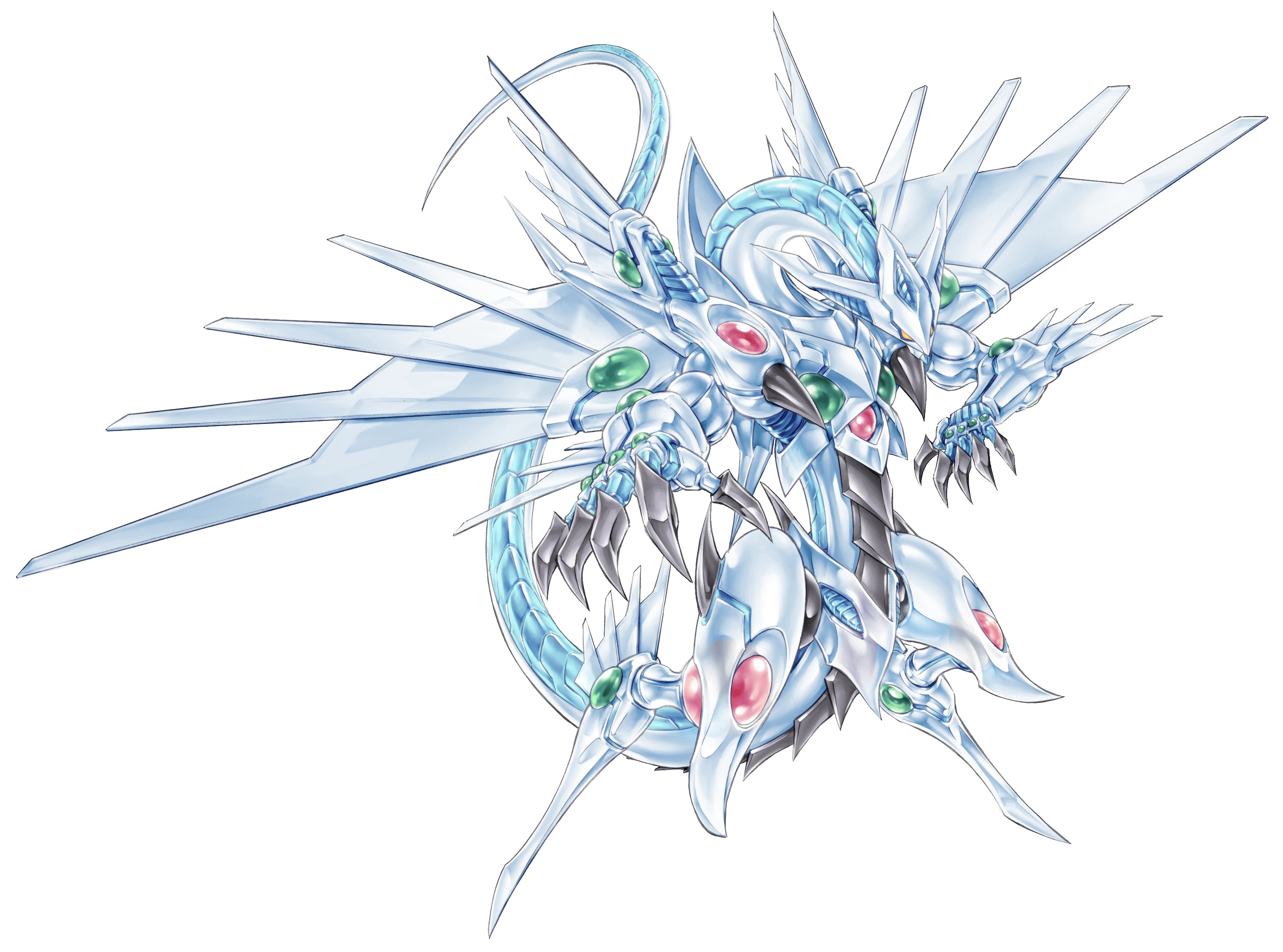 claws dragon dragon_horns dragon_tail duel_monster full_body highres horns konami looking_at_viewer muscular no_humans official_art robot shooting_majestic_star_dragon tail wings yellow_eyes yu-gi-oh! yu-gi-oh!_master_duel