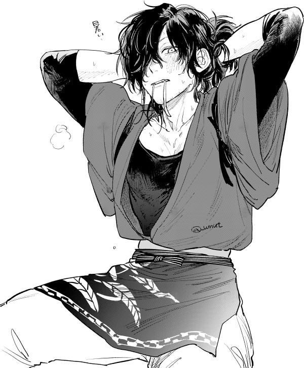 &{ID:7730707 CreatedAt:Thu Sep 22 00:00:33 -0500 2022 Score:3 Width:600 Height:727 MD5:ad6a05e2da981d84872a1dba2655d510 Directory:ad/6a Image:ad6a05e2da981d84872a1dba2655d510.jpg Rating:general Source:https://twitter.com/_wnut/status/1571695366827024385 Change:1757536455 Owner:danbooru CreatorID:6498 ParentID:0 Sample:0 PreviewHeight:350 PreviewWidth:288 Tags:1boy adjusting_hair apron arms_behind_head black_shirt blush commentary_request fate/grand_order fate/type_redline fate_(series) feet_out_of_frame greyscale hair_over_one_eye hair_tie hair_tie_in_mouth hot japanese_clothes koha-ace long_hair long_sleeves looking_at_viewer male_focus monochrome mouth_hold official_alternate_costume okada_izou_(cruel_and_unusual)_(fate) okada_izou_(fate) pants ponytail seiza shirt simple_background sitting solo sweat twitter_username tying_hair waist_apron white_background wide_sleeves wnut Title: HasNotes:false HasComments:false FileURL:https://img2.gelbooru.com/images/ad/6a/ad6a05e2da981d84872a1dba2655d510.jpg PreviewURL:https://gelbooru.com/thumbnails/ad/6a/thumbnail_ad6a05e2da981d84872a1dba2655d510.jpg SampleURL: SampleHeight:0 SampleWidth:0 Status:active PostLocked:0 HasChildren:false IsVideo:false DisplayDate:22.09.2022 00:00}