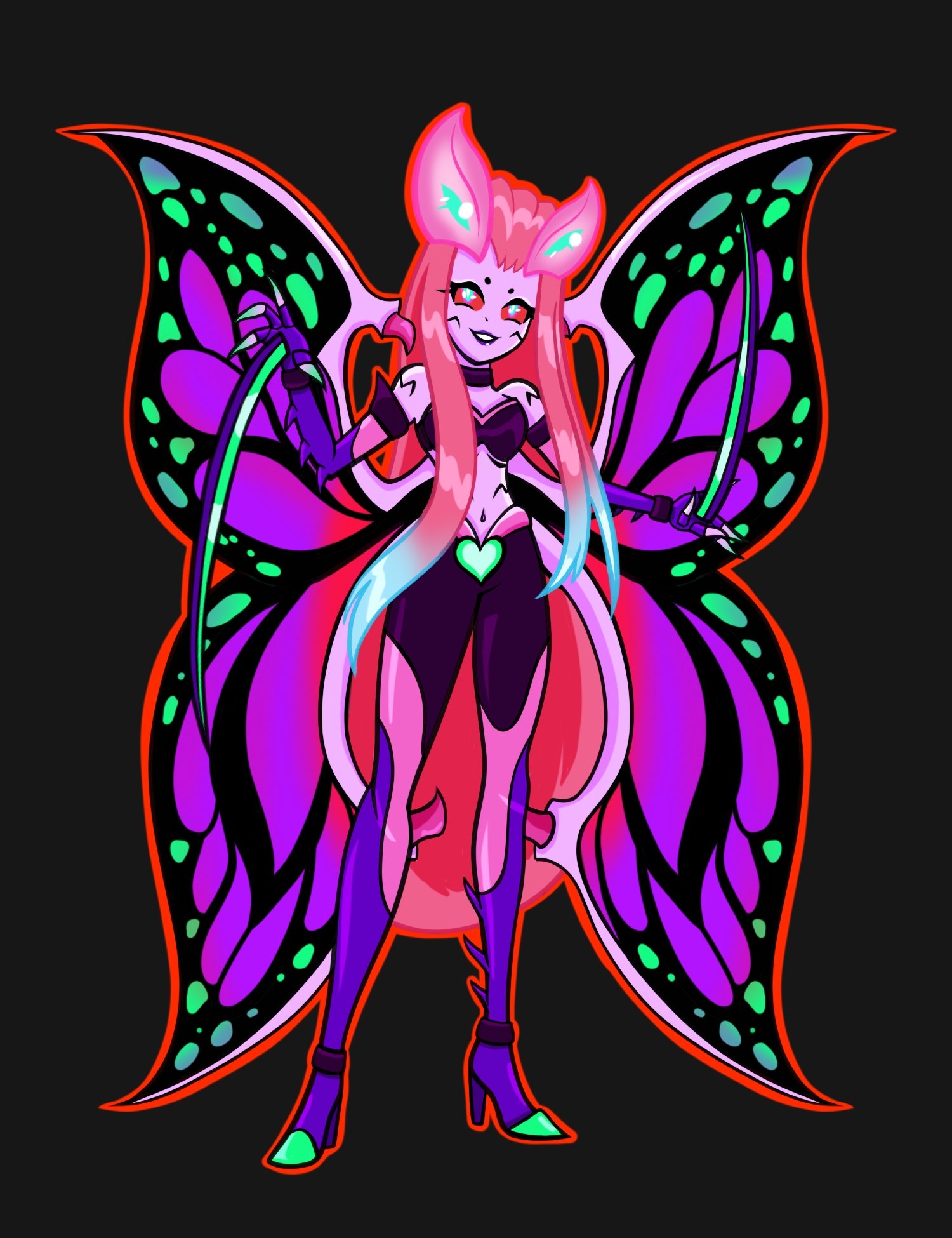 1girl arthropod_girl bug butterfly butterfly_girl butterfly_wings claws highres insect insect_wings original smile solo wings