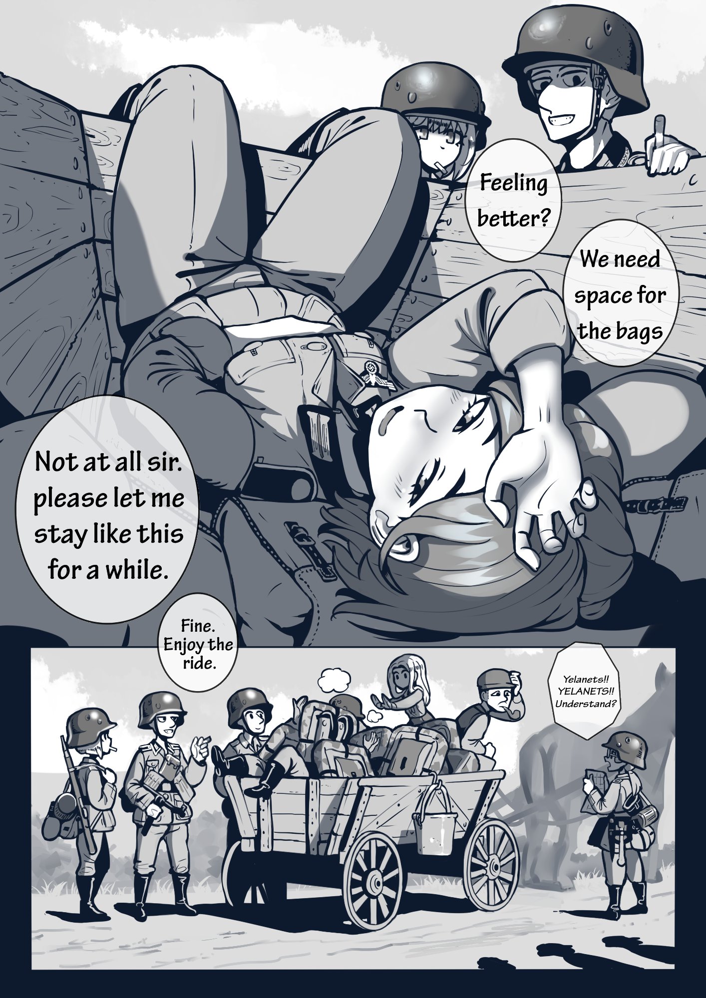 ammunition_pouch bolt_action canteen combat_helmet english_text erica_(naze1940) explosive grenade gun helmet highres mauser_98 military military_uniform monochrome mp40 multiple_boys multiple_girls original pouch rifle smoking smoking_pipe soldier stahlhelm stielhandgranate submachine_gun wagon weapon wehrmacht world_war_ii