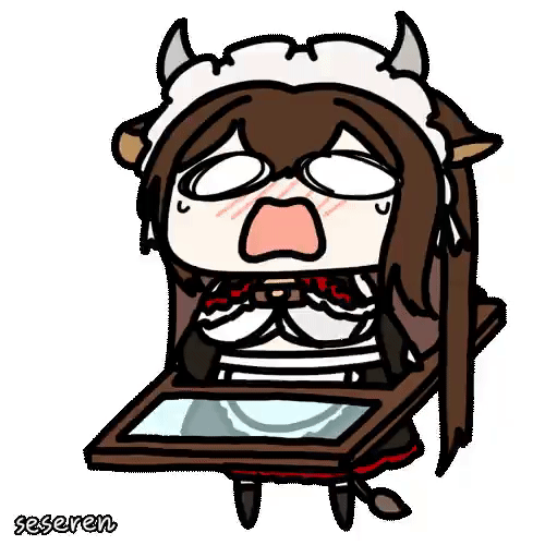 1girl animal_ears animated animated_gif azur_lane cow_ears cow_girl cow_horns cow_tail horns kashino_(azur_lane) kashino_(maid_for_mayhem)_(azur_lane) long_hair lowres open_mouth seseren tail