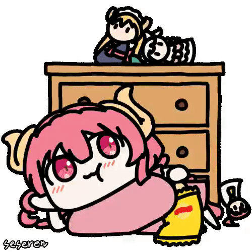 1girl animated animated_gif chewing chips_(food) doll dragon_horns eating food horns ilulu_(maidragon) kanna_kamui kobayashi-san_chi_no_maidragon kobayashi_(maidragon) lowres seseren tohru_(maidragon)