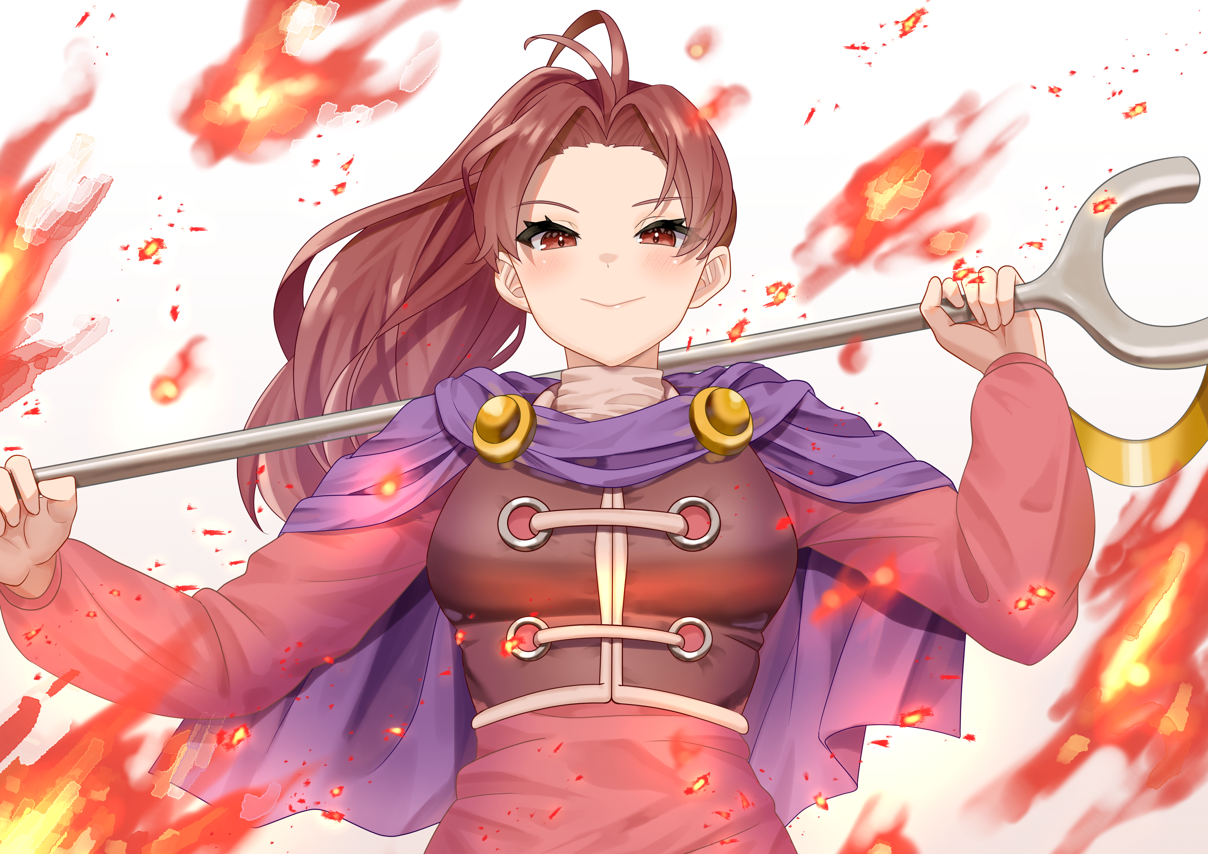absurdres commission commissioner_upload fire golden_sun highres hotobashiri jenna_(golden_sun) looking_at_viewer ponytail skeb_commission smile staff
