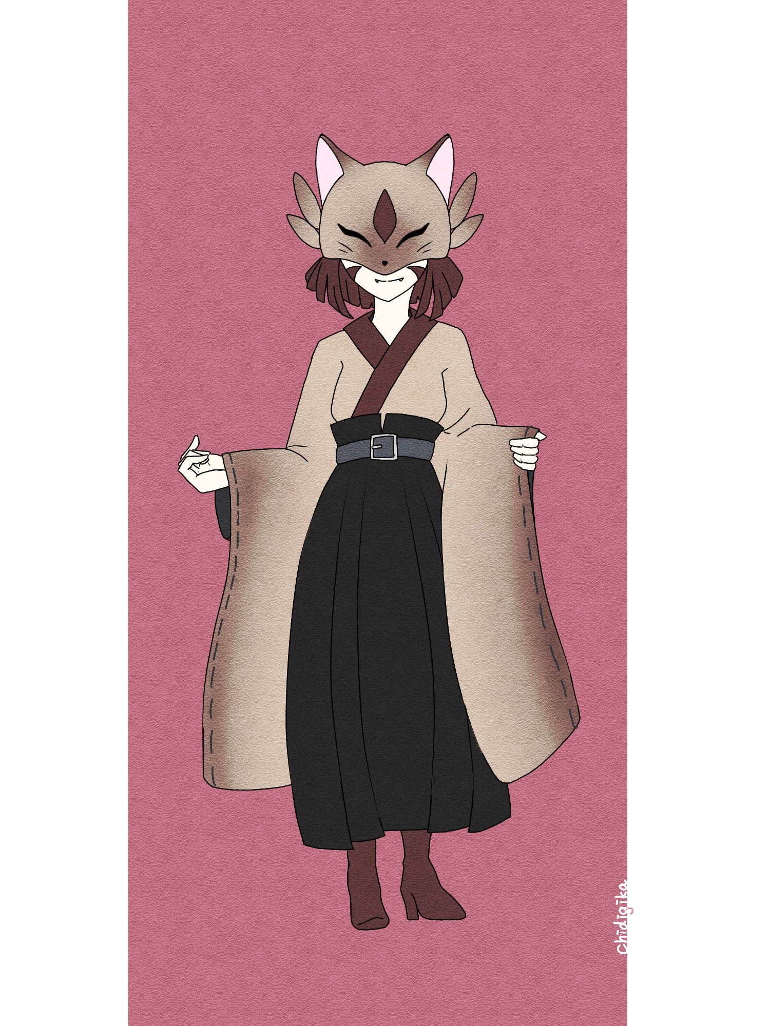 1girl belt digimon highres japanese_clothes kuzuhamon kuzuhamon_miko_mode mask miko original sakuyamon sakuyamon_miko_mode solo