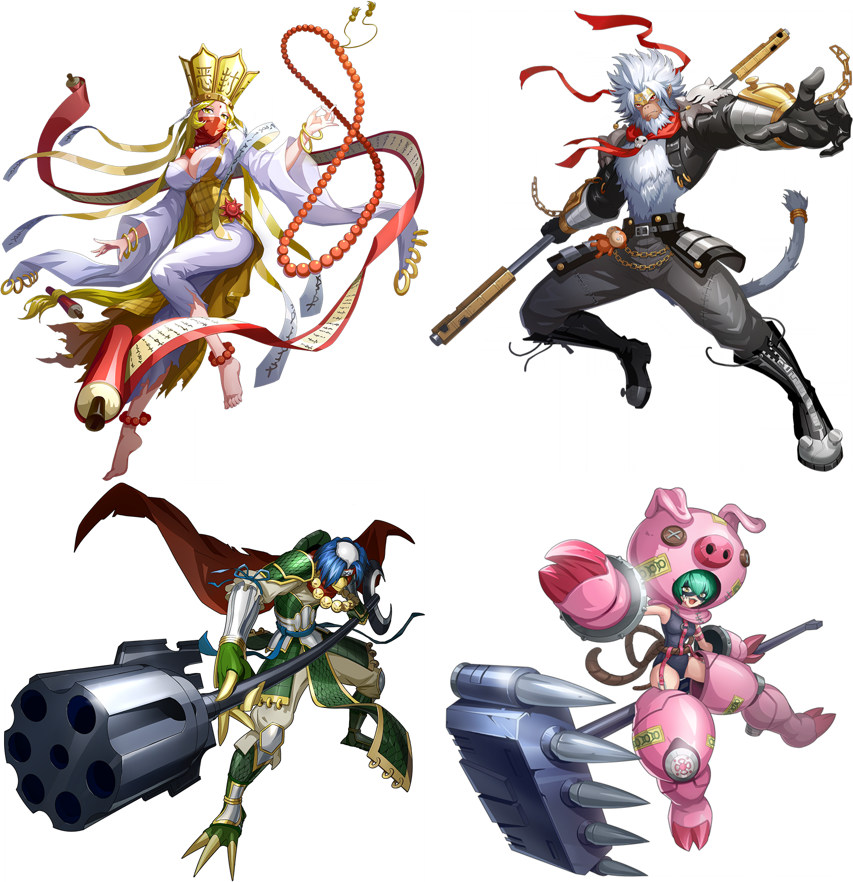 2boys 2girls armor bandai barefoot blonde_hair breasts cape cho-hakkaimon crown digimon digimon_new_century dress fighting_stance gokuwmon green_hair hammer highres holding holding_weapon journey_to_the_west kappa large_breasts long_hair looking_at_viewer mask monk monkey monkey_boy multiple_boys multiple_girls official_art one-piece_swimsuit pig_mask polearm sanzomon scroll shawujinmon shiny_skin smile spikes swimsuit toes weapon wide_hips yellow_eyes