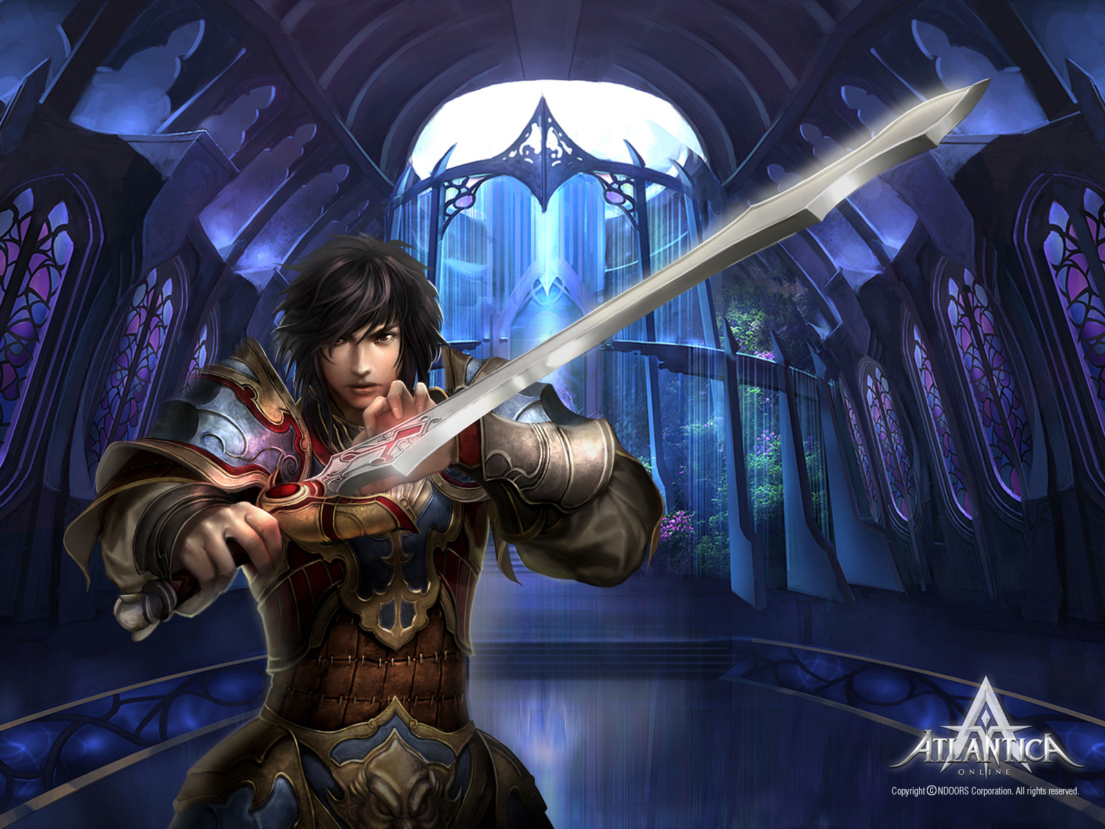 1boy armor atlantica_online black_hair copyright_logo copyright_name greatsword highres holding holding_sword holding_weapon logo sword tagme weapon