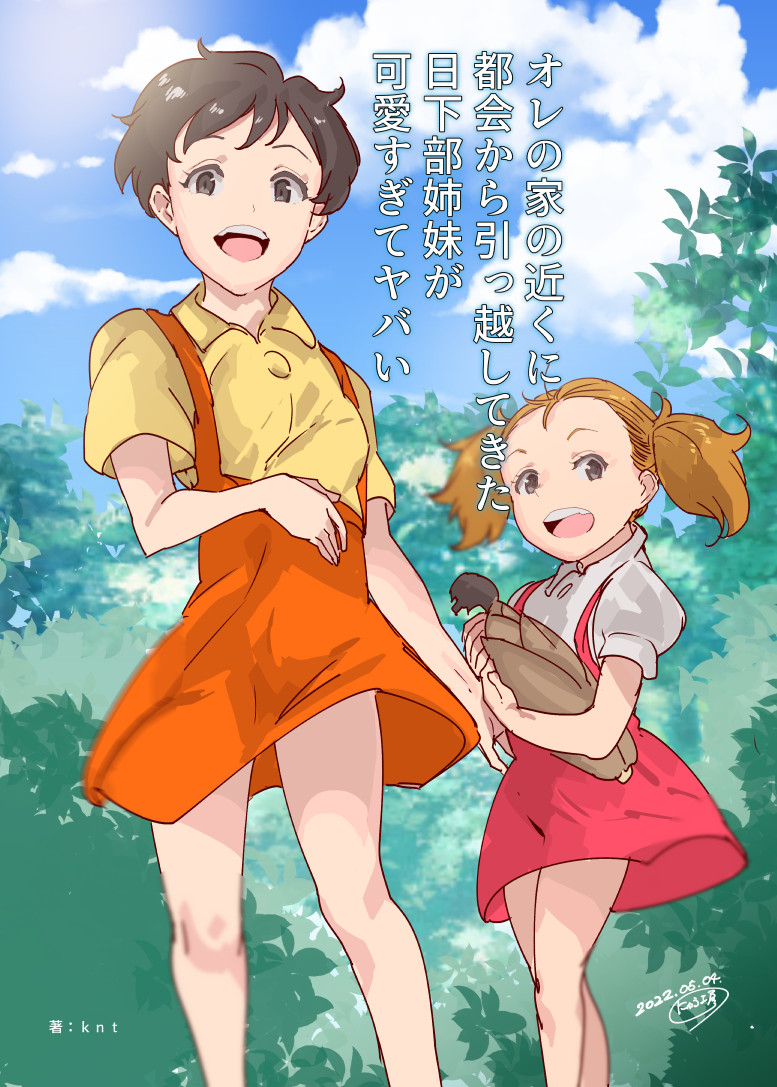 2girls corn kusakabe_mei kusakabe_satsuki multiple_girls nyu7nyu outdoors short_hair siblings sisters skirt studio_ghibli tonari_no_totoro translation_request twintails