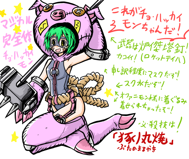 1girl cho-hakkaimon costume digimon hammer solo spikes