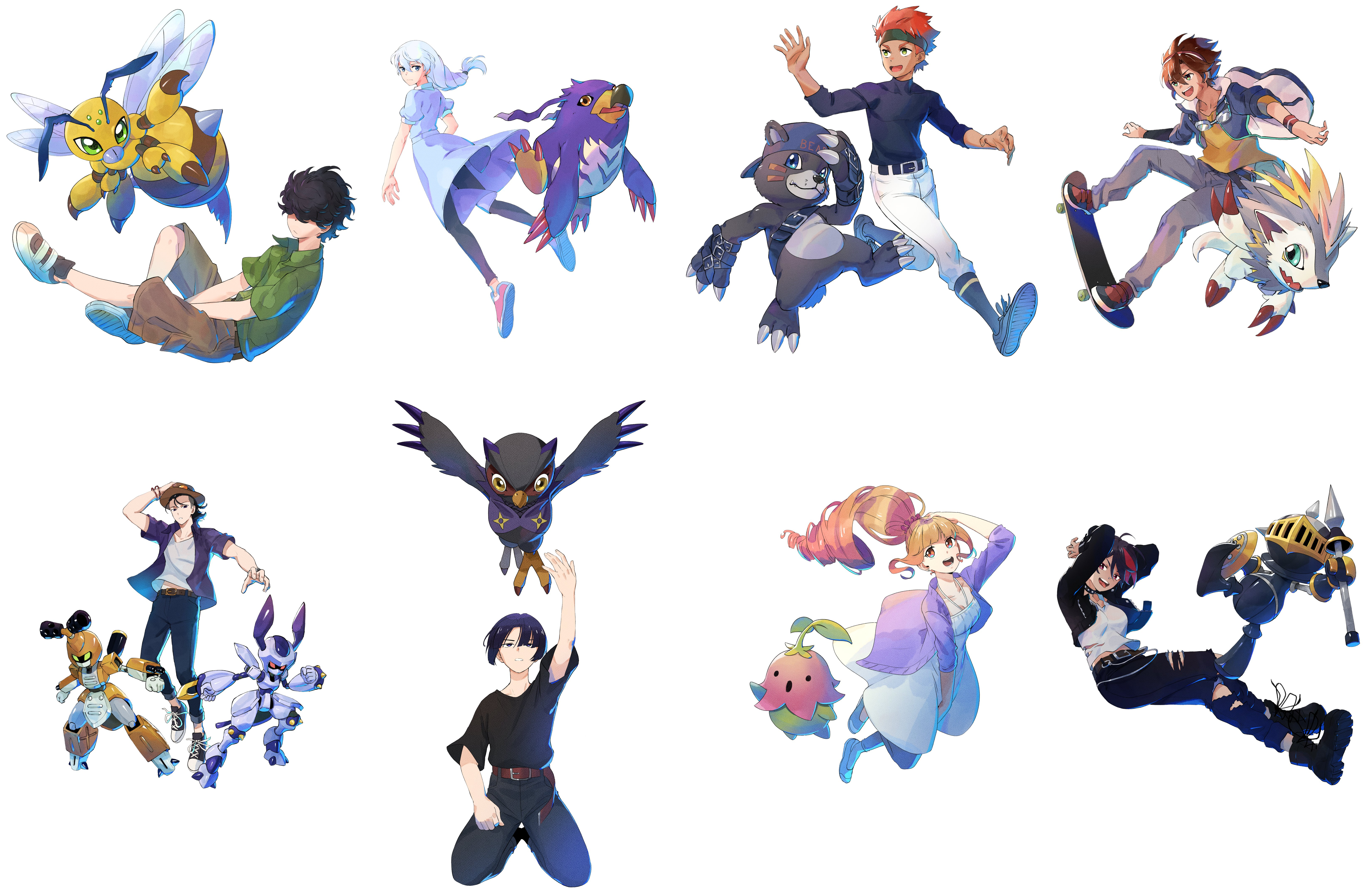 absurdres armor bearmon bee belt bird bug claws digimon digimon_survive falcomon_(digimon_savers) funbeemon herissmon highres insect lalamon lance medarot metabee original pawnchessmon_(black) penguin penmon plant polearm rokusho_(medarot) weapon wings
