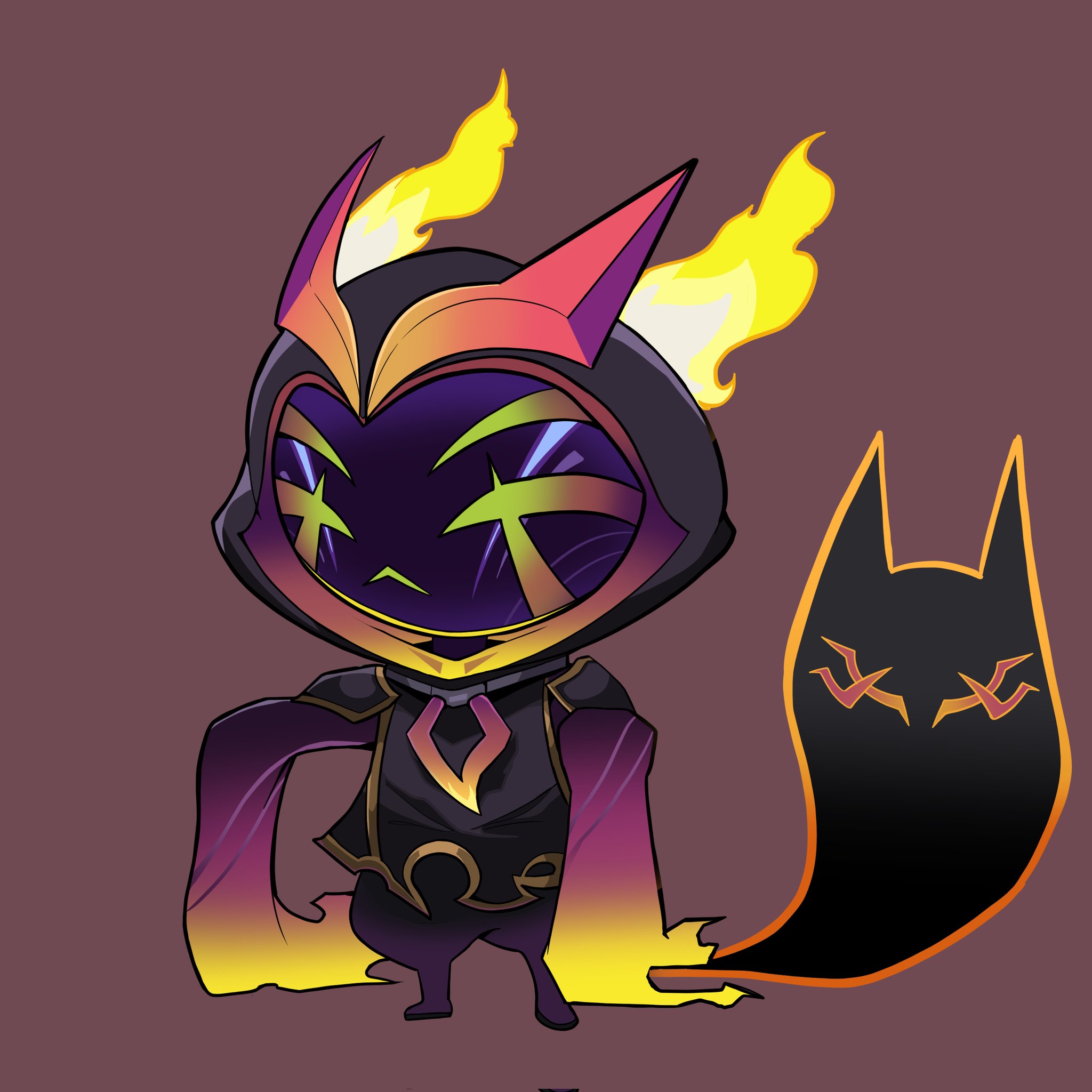 beseunaj-jamjaneun_gemdol-i chibi closed_mouth crystal_ball empyrean_vex extra_eyes fire highres hood league_of_legends long_sleeves shadow vex_(league_of_legends) yellow_fire