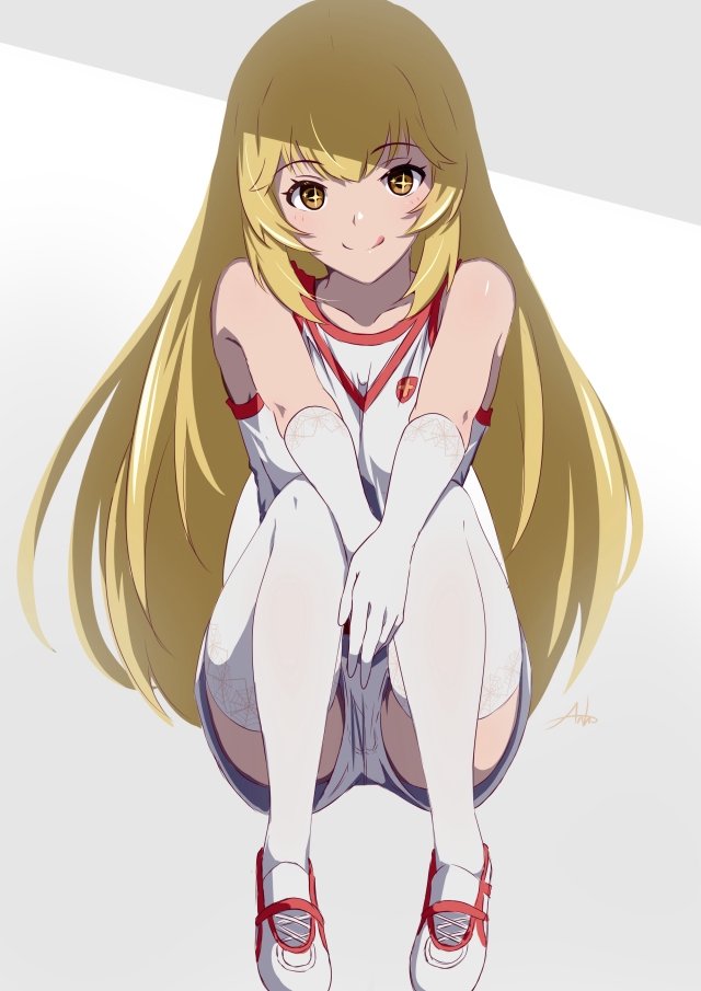 1girl :p anho artist_name blonde_hair brown_eyes collarbone elbow_gloves female_focus full_body gloves gym_shirt gym_shorts gym_uniform long_hair looking_at_viewer shirt shoes shokuhou_misaki shorts simple_background sleeveless sleeveless_shirt sneakers solo sparkling_eyes spider_web_print squatting thighhighs thighs toaru_kagaku_no_mental_out toaru_kagaku_no_railgun toaru_kagaku_no_railgun_t toaru_majutsu_no_index tongue tongue_out white_gloves white_shirt white_shoes white_shorts white_thighhighs