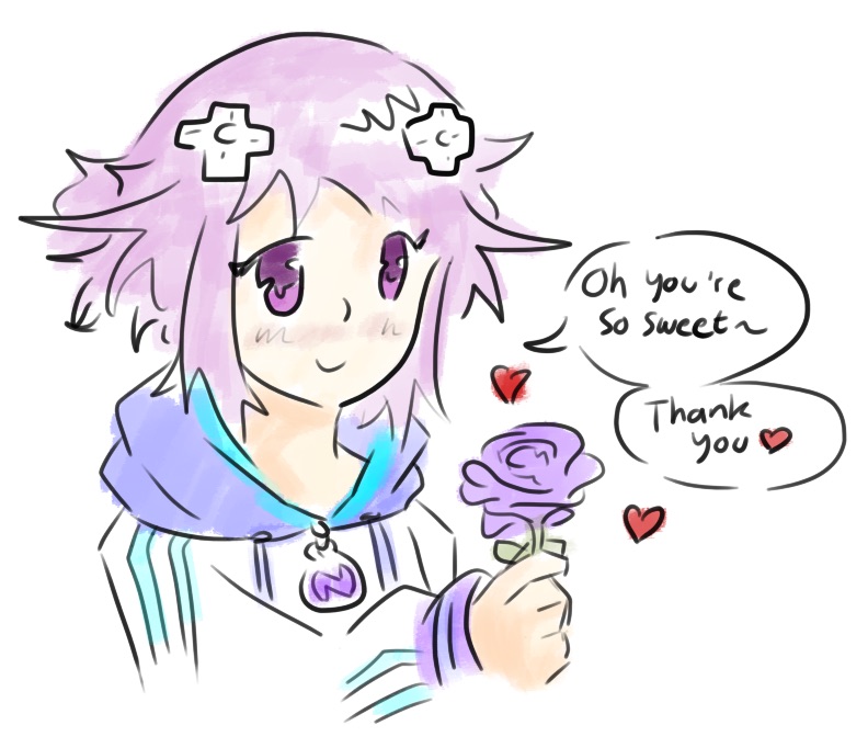 blush d-pad d-pad_hair_ornament english_text flower hair_ornament heart neptune_(neptunia) neptune_(series) parka purple_eyes purple_hair short_hair simple_background white_background