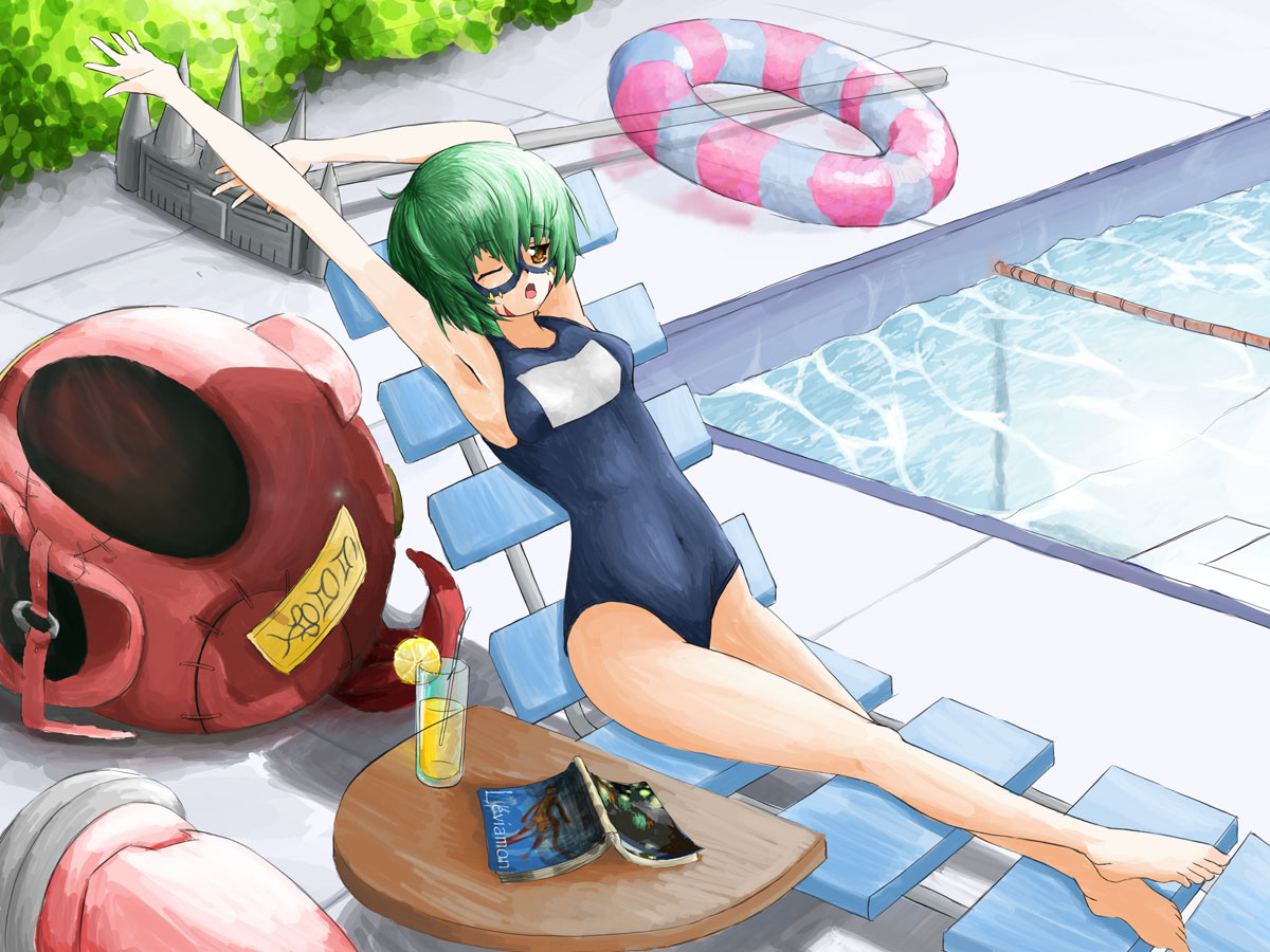 1girl cho-hakkaimon costume digimon pig pool solo swimsuit