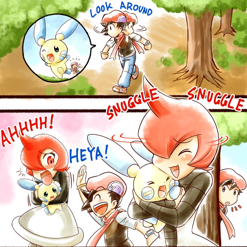 1girl blush breasts comic cosplay english_text gen_3_pokemon hareta_(pokemon) ihara_shigekatsu japanese_text looking_at_viewer lucas_(pokemon) lucas_(pokemon)_(cosplay) mars_(pokemon) minun nintendo plusle pokemon pokemon_dp_(manga) pokemon_diamond/pearl/platinum red_eyes red_hair short_hair solo tagme team_galactic team_galactic_uniform thick_thighs thighs wide_hips