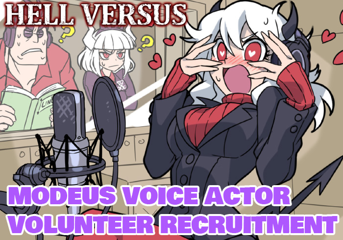 1boy 2girls ? black_hair black_horns black_jacket blush book breasts business_suit crossed_arms demon_girl demon_horns demon_tail english_text fan_game formal_clothes headphones heart heart-shaped_pupils helltaker helltaker_(character) hellversus holding holding_book horns jacket kyo-hei_(kyouhei) large_breasts long_hair long_sleeves lucifer_(helltaker) microphone miniskirt modeus_(helltaker) multiple_girls open_mouth pantyhose red_pantyhose red_shirt red_sweater ribbed_sweater shirt short_hair skirt squinting studio studio_microphone suit sunglasses sweat sweater symbol-shaped_pupils tail white_hair white_horns