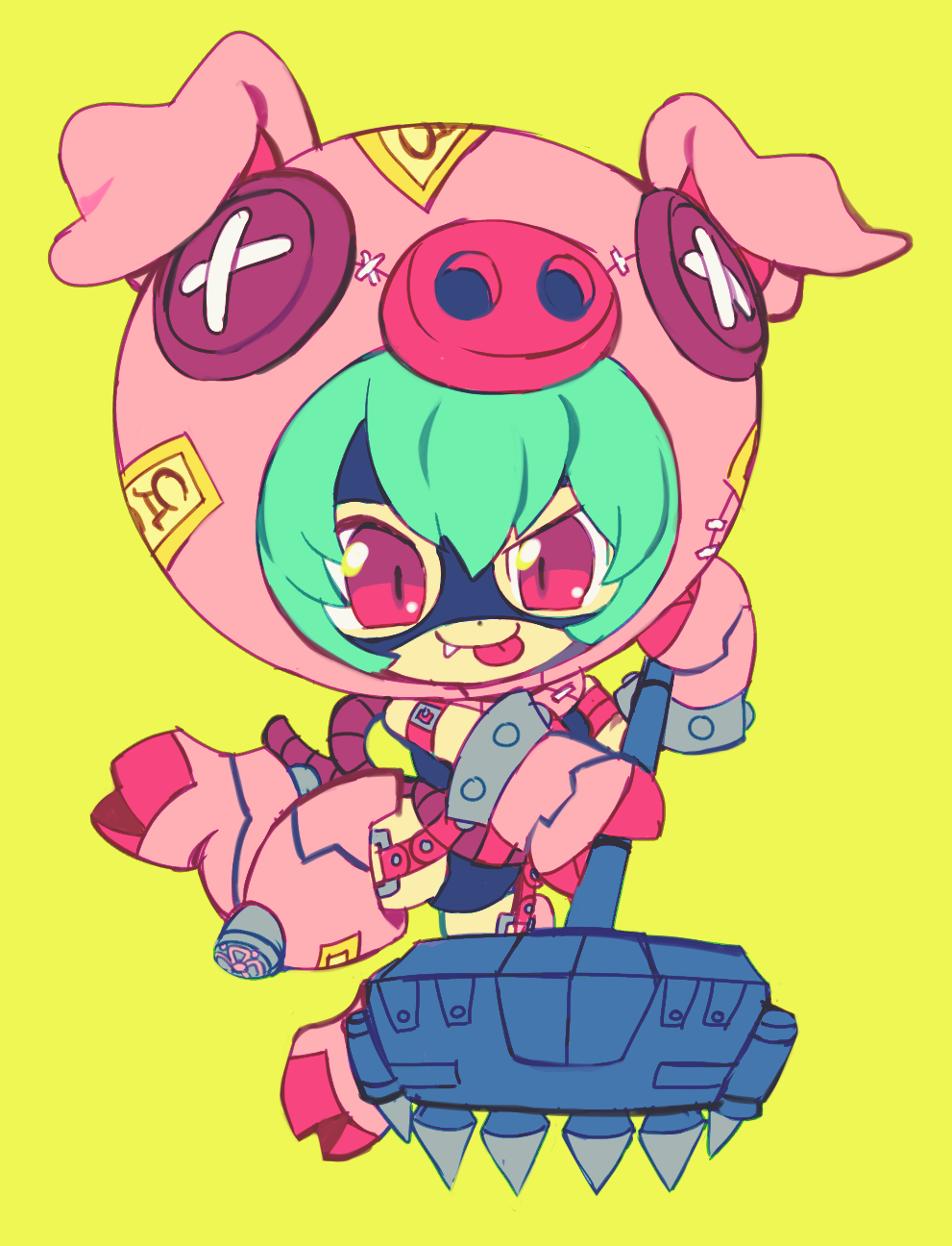 cho-hakkaimon digimon hammer highres mask spikes tongue tongue_out