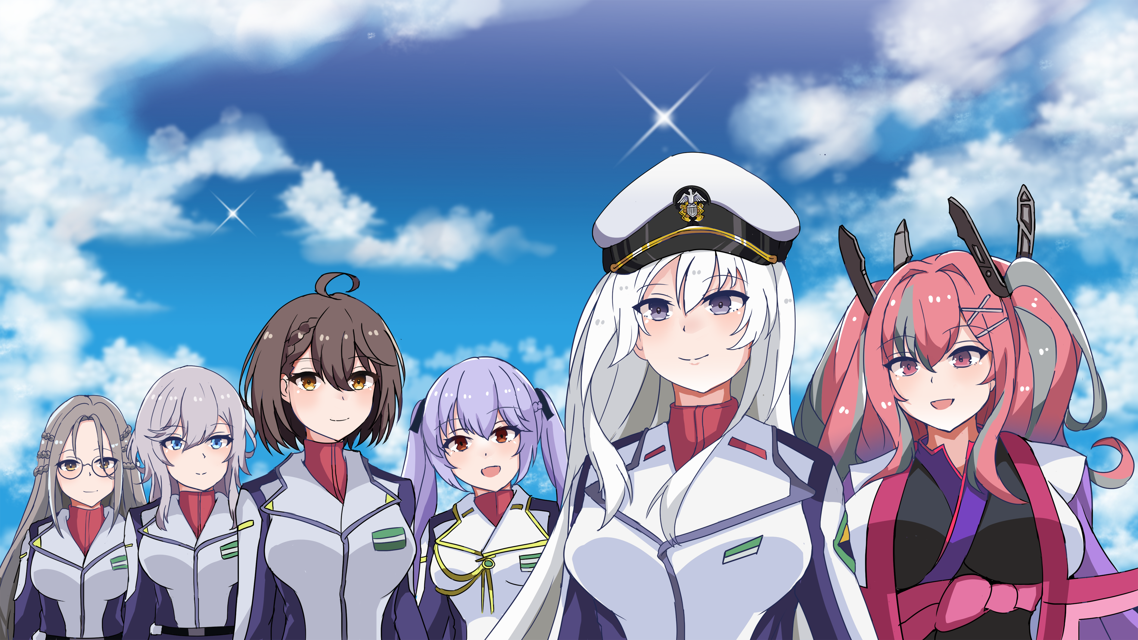 6+girls absurdres azur_lane baltimore_(azur_lane) black_hair bremerton_(azur_lane) commission enterprise_(azur_lane) essex_(azur_lane) glasses grey_hair gundam gundam_seed gundam_seed_destiny hat highres long_hair lsheng military military_hat military_uniform multiple_girls parody pixiv_commission purple_hair red_hair shangri-la_(azur_lane) short_hair twintails washington_(azur_lane) white_hair