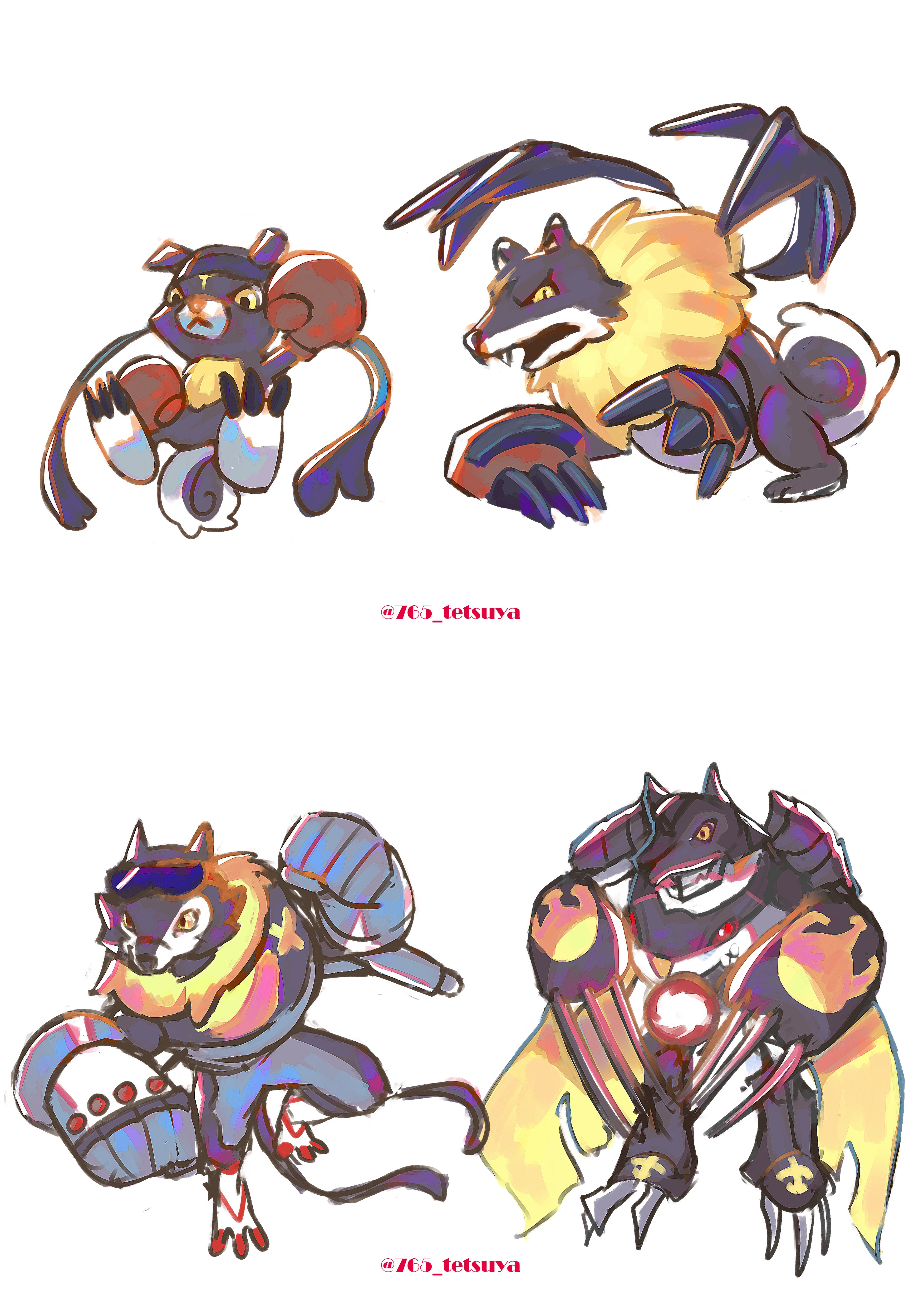 absurdres bandana blackgaogamon blackmachgaogamon cape claws digimon dog gaomon highres miragegaogamon original red_eyes simple_background white_background yellow_eyes